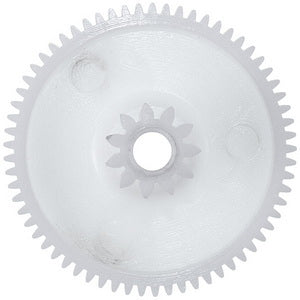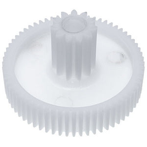 Medium gear for meat grinder Belvar 721624002 | Factory number: 721624002 Parameters: Height of the large ring, mm: 15 Height of the small ring, mm: 28 Height, mm: 37.5 Diameter of the large ring: 66 Diameter of the small ring: 20 Number of teeth of the large ring: 65 Number of teeth of the small ring: 11 Gear type: Medium Shape of tooth lines: Straight Color: Black