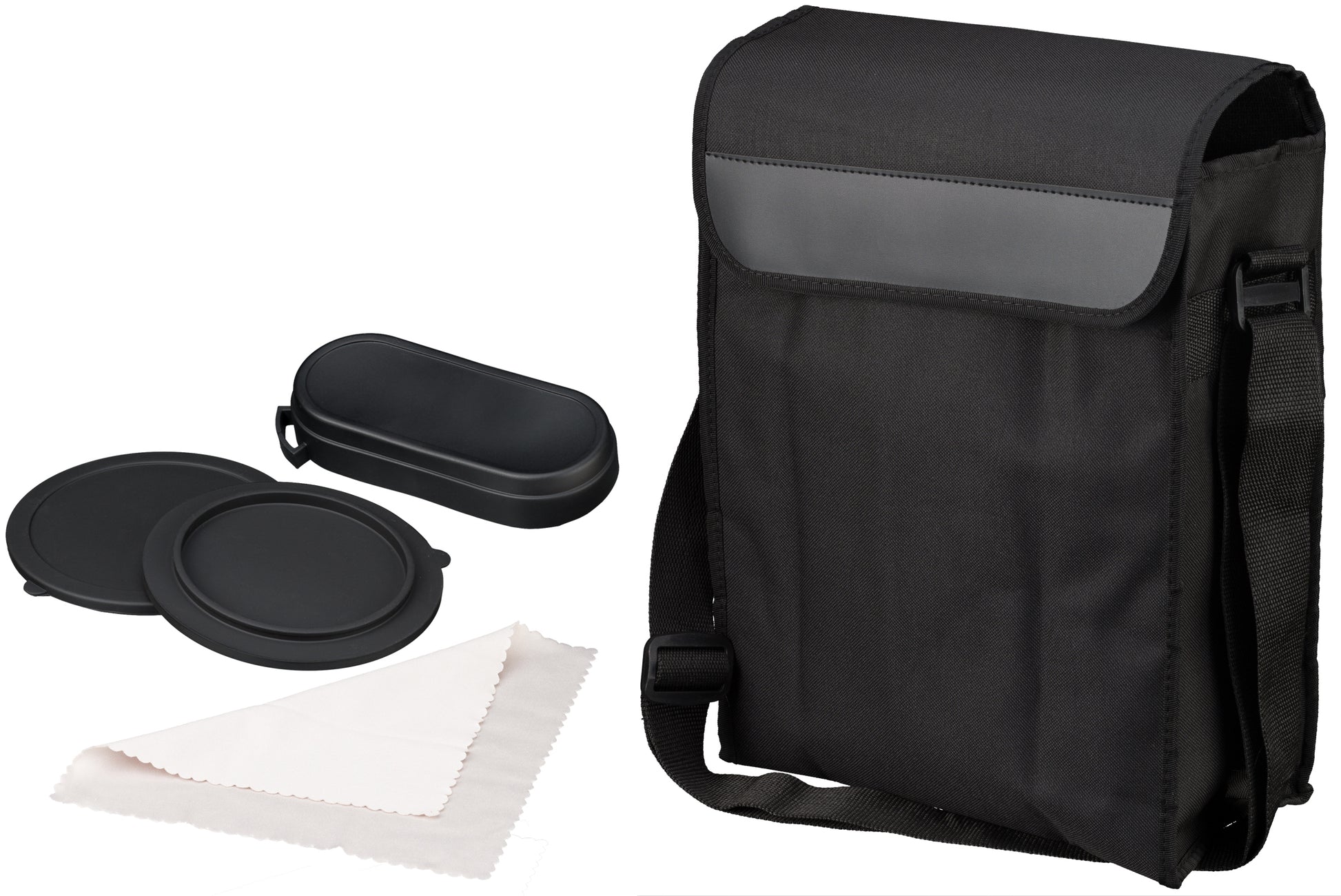 The binoculars are equipped with an adapter for mounting on a tripod. A high-quality tripod is necessary to capture the extremely small microscopic lenses of the binoculars, which produce images at 20x magnification. Covers for eyepieces and lenses, a soft case and a strap allow you to protect the binoculars from damage during transportation.