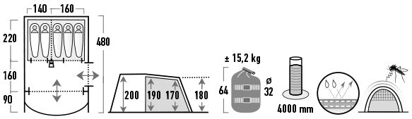 High Peak Brixen 5.0 Light Grey/Dark Grey/Green (11816) - a four-piece tunnel lining with two entrances, a side and a sewn lining, which will provide protection against abrasive lumps and unnecessary stretches. The integration of the canopy creates shadow and helps to avoid hitting the board in the middle before the doors open. The living area, with a height of 1.9 m, provides sufficient space for placing camping tables, tables and general storage. Often the curtains on the front doors will ensure a constant flow of fresh air into the room. Seamless doors increase the flow of fresh air and prevent coma. The open windows in the living area should be filled with light, and the curtains should be adjusted if necessary. It has a thermally inflatable aluminized coating, which reduces the temperature rise in the middle of the day during sunny weather.