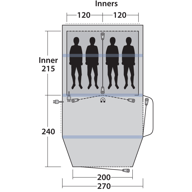 Frame: Inflatable support beams + fiberglass arc Ø8.5 mm