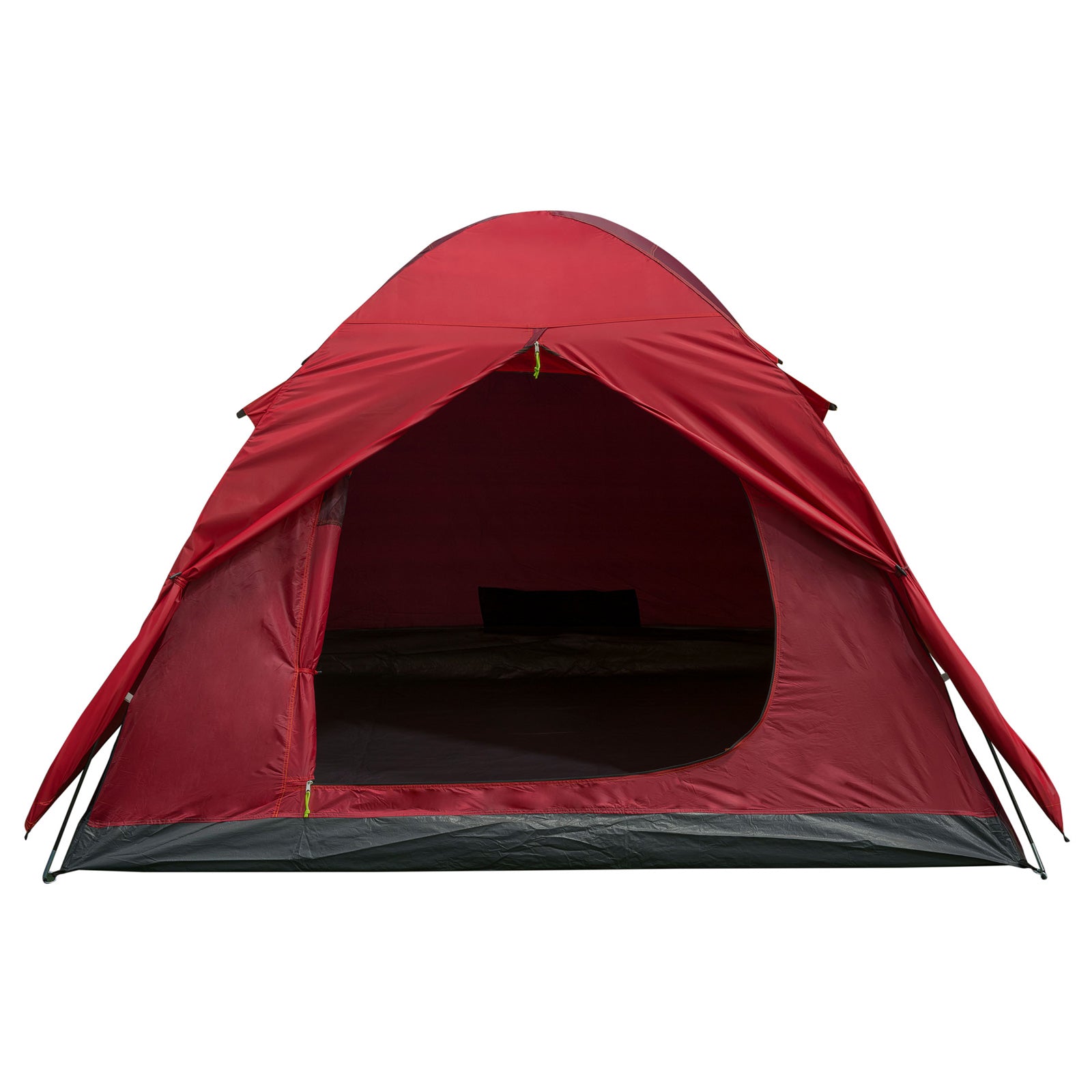 The two-person Highlander Birch 2 Rumba Red/Tango Red tent is designed for both secluded outdoor recreation and noisy open-air festivals. The tent can be easily set up in just 2 minutes by one person, and the total weight of 3 kg allows you to put it in a medium-sized backpack and go on an adventure. This tent has a vestibule in which you can leave shoes and outerwear. The outer awning with taped seams has a water resistance of 2000 mm of water column, ensuring the comfort and dryness of the inner tent even during heavy but short-term rain. The tent is made of fire-resistant material, has a mosquito net on the top of the door and an adjustable ventilation section on the back of the outer awning.