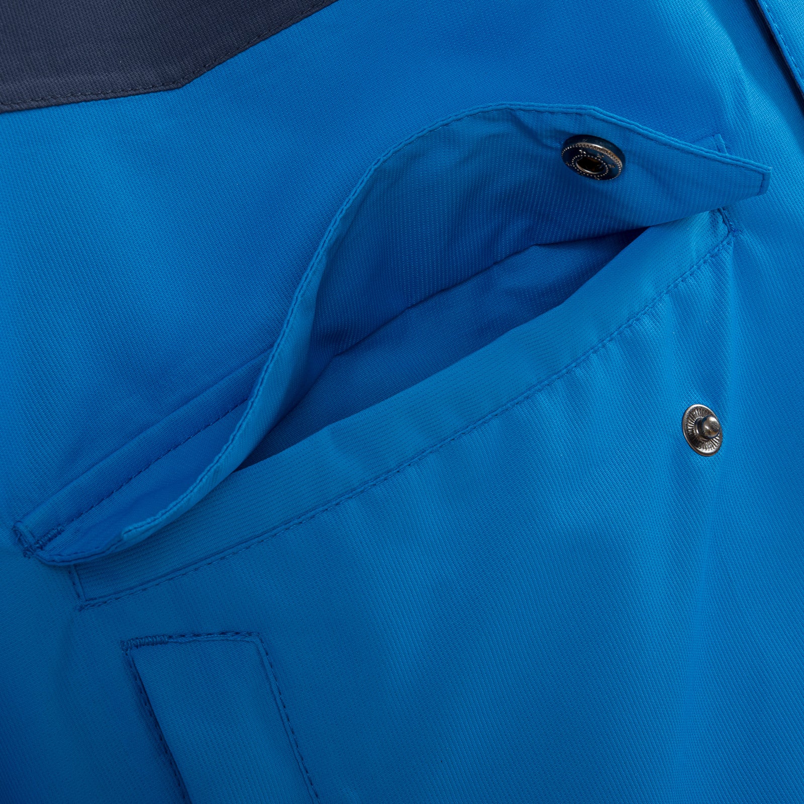 - Two front pockets are protected by a placket