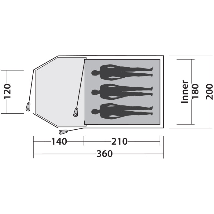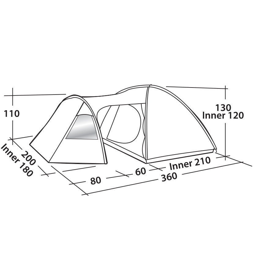 Easy Camp Eclipse 300 Rustic Green (120386) - a trim dome cover with a tunnel entrance for a comfortable sleep for three people. The third arc creates a small vestibule with a significant base to accommodate similar equipment necessary for repairs in nature. The open windows fill the interior space with light. Large entrance doors, as well as side doors, provide manual access from the middle. Adjustable ventilation windows at the front and top of the tent ensure constant air circulation. The interior features D-shaped doors for manual access and a hanging point for a lighter. A spacious vestibule and a comfortable bedroom, combined with the compact size of the bag-cover, make this ideal for tourists who are looking to increase the price of a small car.