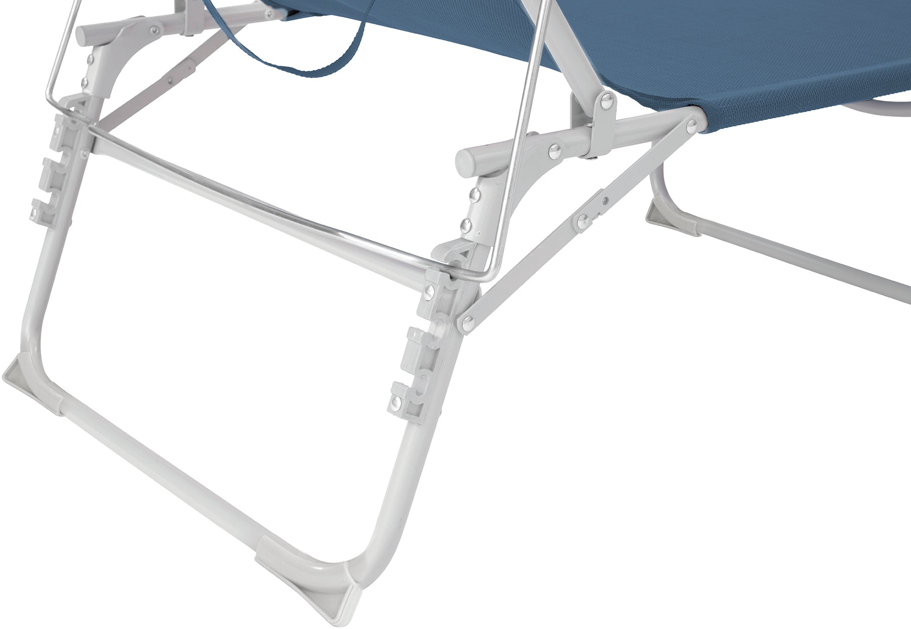 The easy-to-fold Outwell Tenby Ocean Blue (410097) has a stainless steel frame and Textiline upholstery that is easy to clean. The model does not require assembly; it unfolds and folds in just seconds. The backrest is adjustable in three positions, allowing you to transform the folding bed into a comfortable lounger.