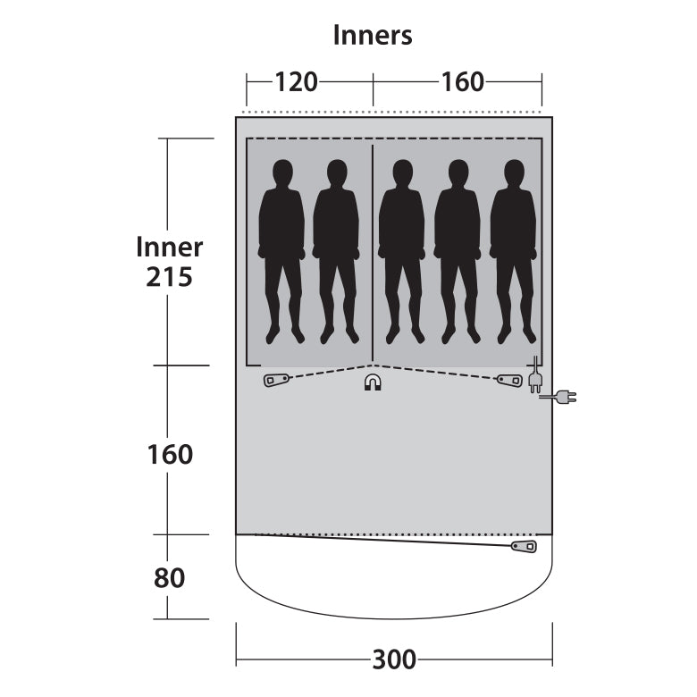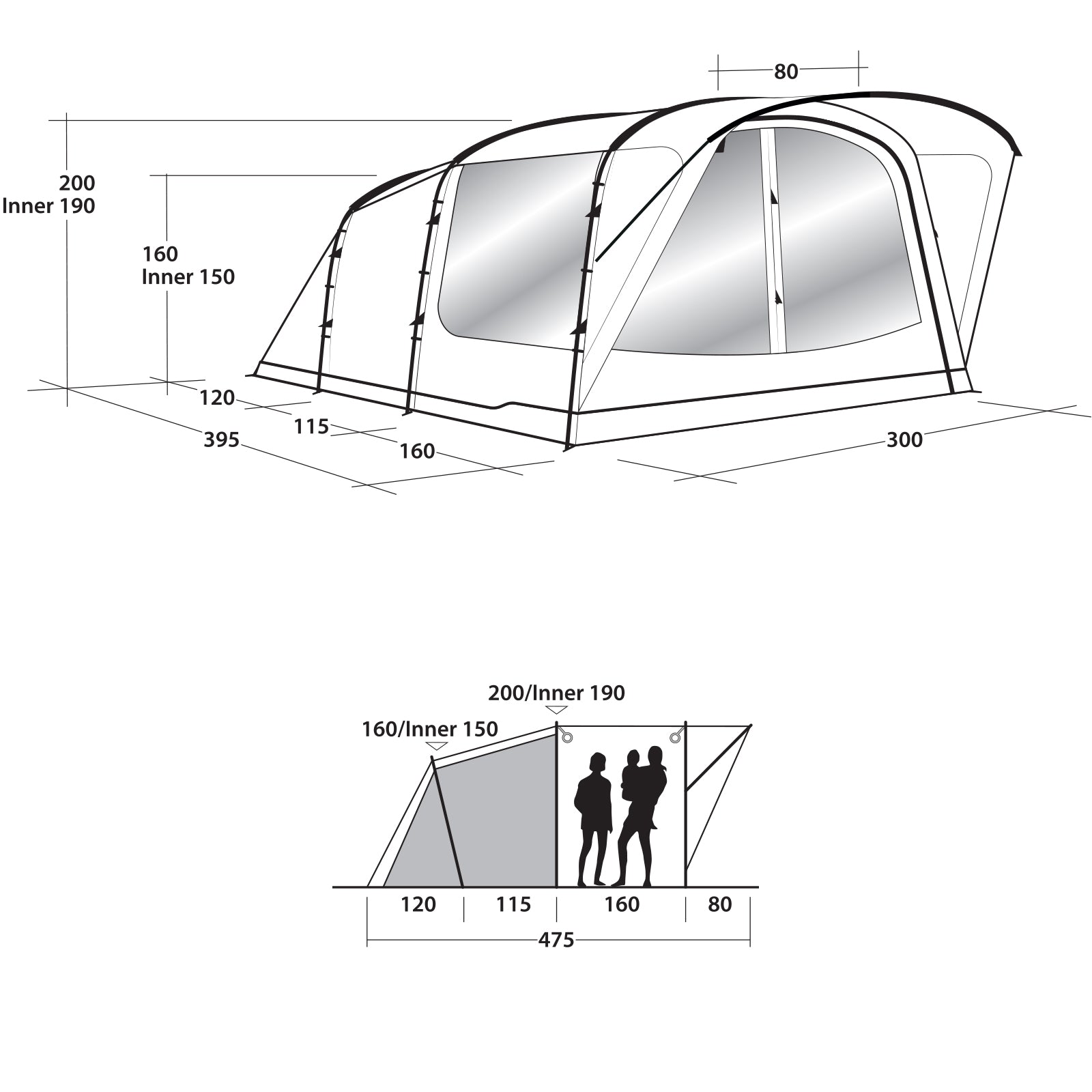 Equipment: Internal tarpaulin, external awning, compression bag, arches, cords, drawstrings, instructions