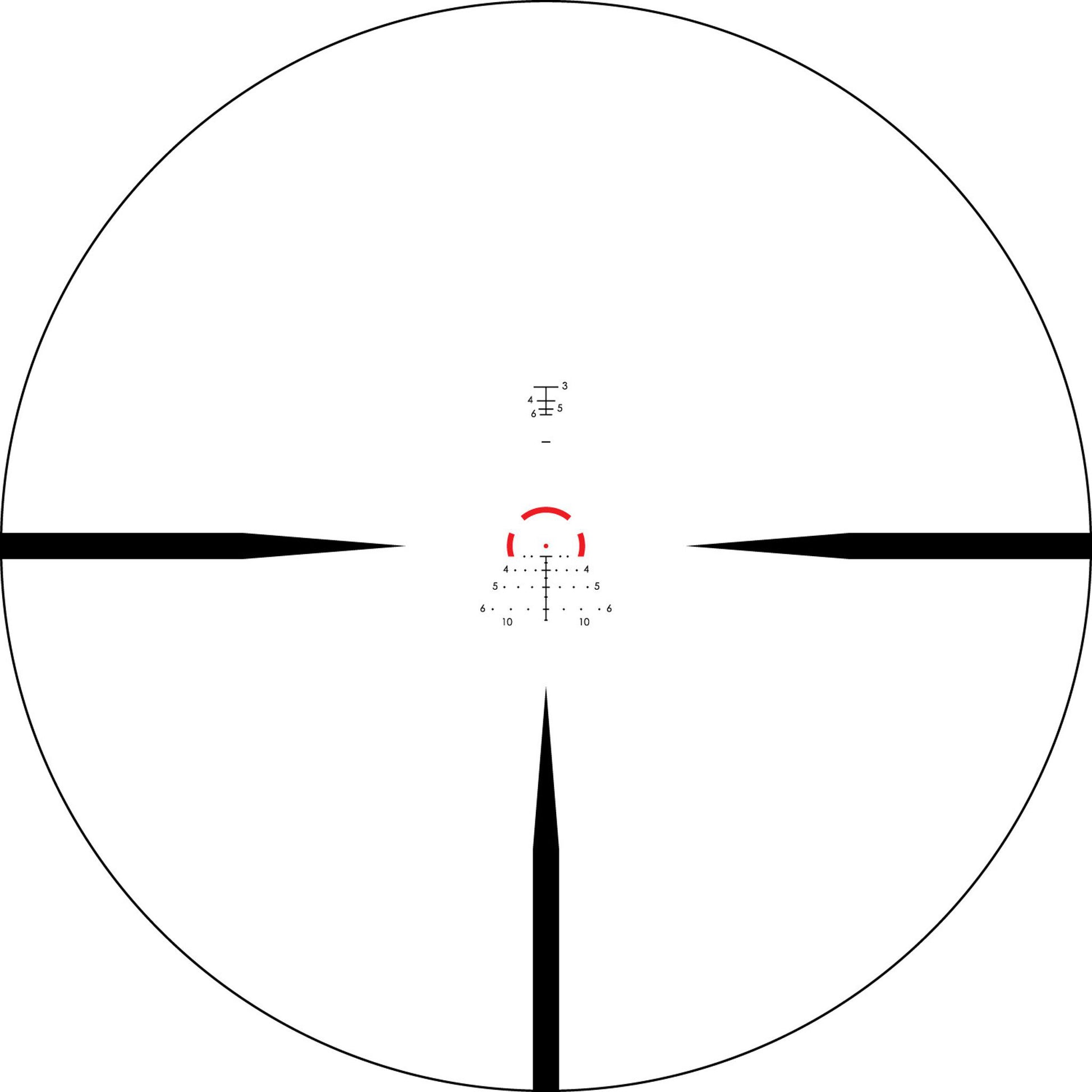 - The aiming mark is at a different focal plane . The scale of the aiming mark becomes unchanged due to changes in the magnification ratio of the image. Aiming at a lower size, the aiming mark can be adjusted to adjust the distance to the mark, and also helps to make corrections for height and wind when shooting at long distances.