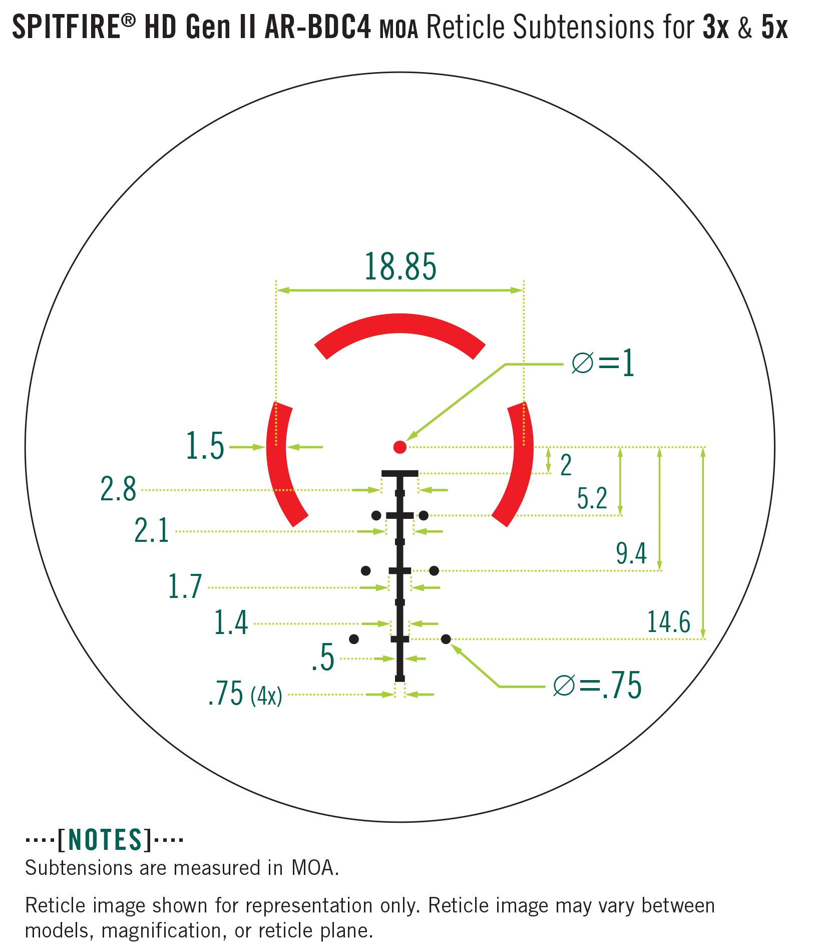 This type of reticle is designed to maximize the effectiveness of the 5.56 cartridge in your AR propeller, providing both target detection and a graduated reticle scale for making horizontal corrections at distances up to 650 yards.