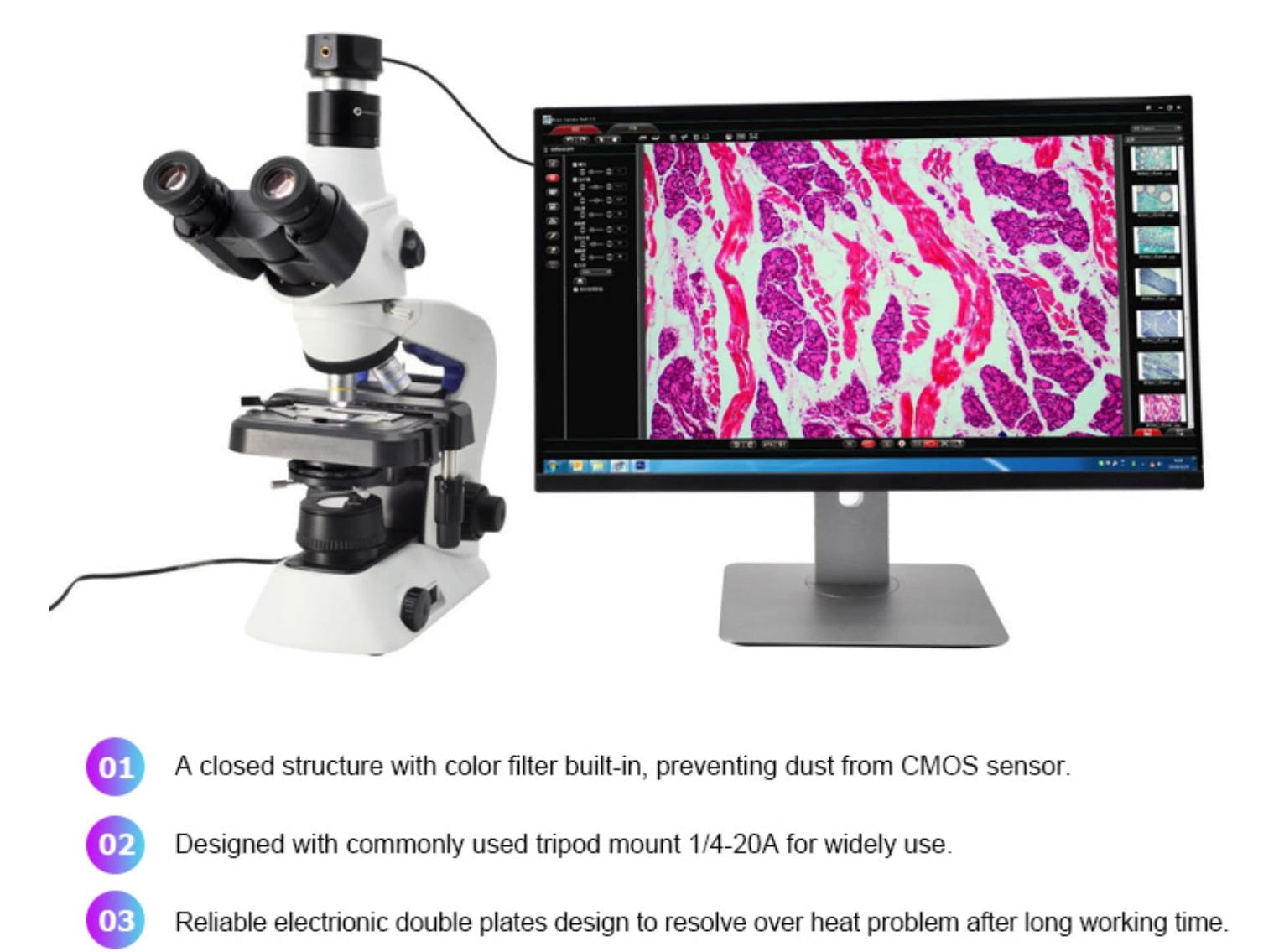 Most often, we have to spend a long time looking into the eyepiece of a microscope or telescope, focusing on our view, in order to observe not only the object, but also its movement under the lens. At the moment, having weakened your respect, you can skip this step or waste the object on respect and then carry out the same investigation again and again. A camera for microscopes and telescopes in Full HD makes it possible to monitor the microscope and telescope more conveniently, transferring images to the monitor. The eyepiece is connected to a computer using the most advanced USB interface. The eyepiece is suitable for most microscopes and telescopes of various types.