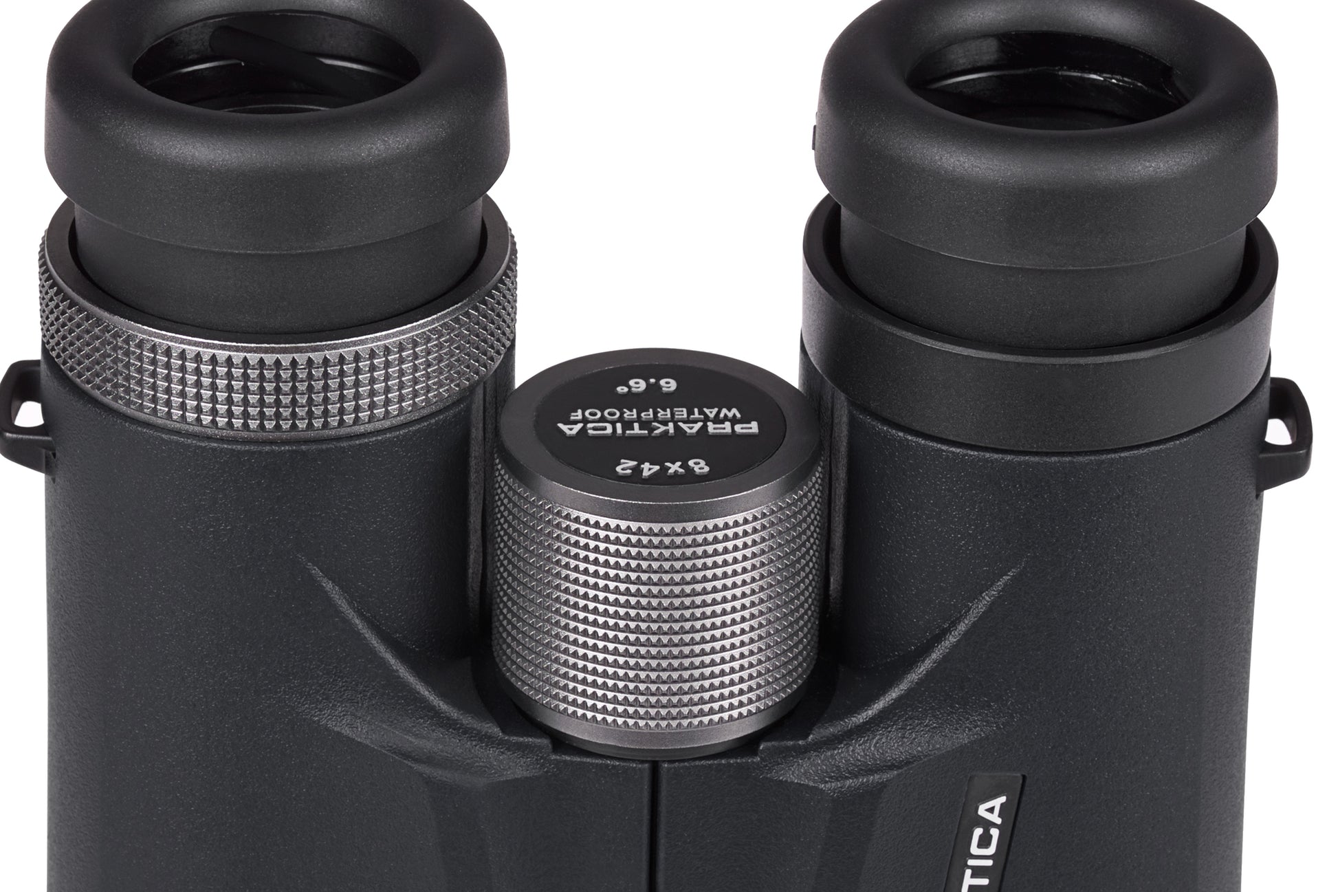 Traditionally, the image sharpness is adjusted with the central wheel, and there is also the possibility of diopter correction using the ring on the right eyepiece in order to adjust the device to individual vision characteristics. The central wheel and the diopter correction ring are made in the same style and allow for very precise adjustment, thanks to the large diameter and tactilely perceptible profile knurling. The interaxial distance is adjusted in a wide range. The eyecups fix the pupil removal point at a distance of 18 mm, which allows using this device both with and without glasses. Thus, the binoculars have all the necessary adjustments for ease of use.