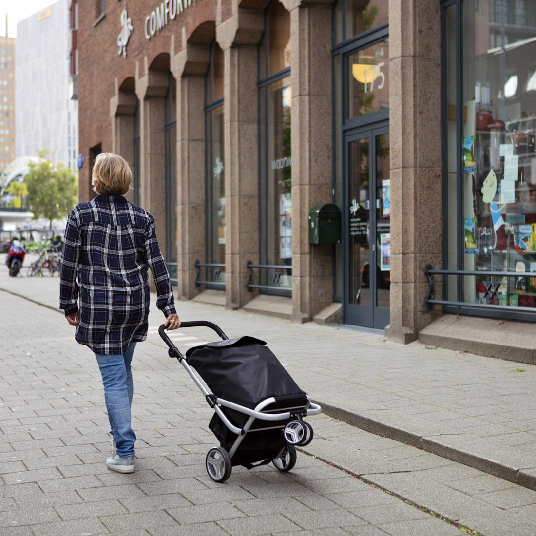 The ShoppingCruiser 3 Wheels Black (604349) carrier bag is lightweight, flexible, durable, and compact. The tricycle system provides stability and maneuverability, as well as the ability to carry the cart in front of you. The chassis design is equipped with a three-point support for the wheels, so the bag-carrying stand can also serve as an additional support when re-drying. The front pair of wheels is capable of independent 360° rotation, which makes it easy to maneuver during a crash.