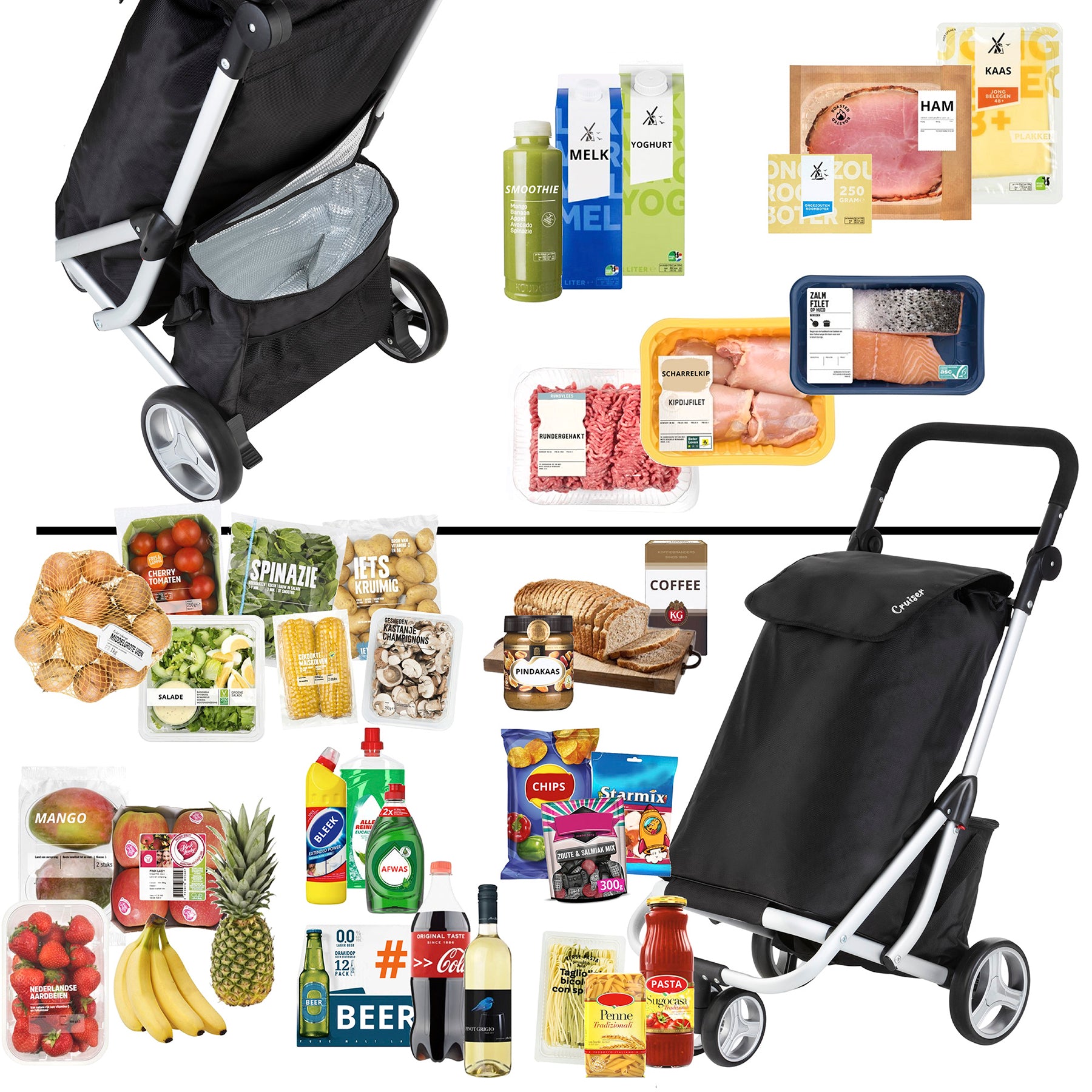 - The isothermal bag can be removed or secured to the chassis using a textile fastener. Dimensions (H x W x D) 30 x 28 x 15 cm. You can tie the bag with a shoulder strap.