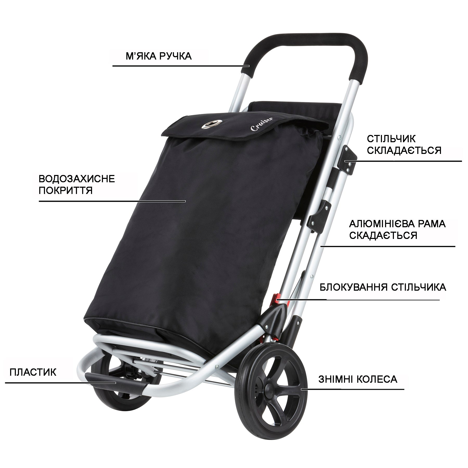 The Shop & Relax carrier bag has all the advantages of the carrier brand ShoppingCruiser® - lightness, flexibility, durability, compactness. The peculiarity of this carriage is the presence of a recycled folding chair. This is a reliable and compact carrier on the roads, on the beaches or fishing, on the roads in public transport or in parks for repairs. Knowing that you are on the road, you can lightly move your seat, sit down, and then continue on the intended route.