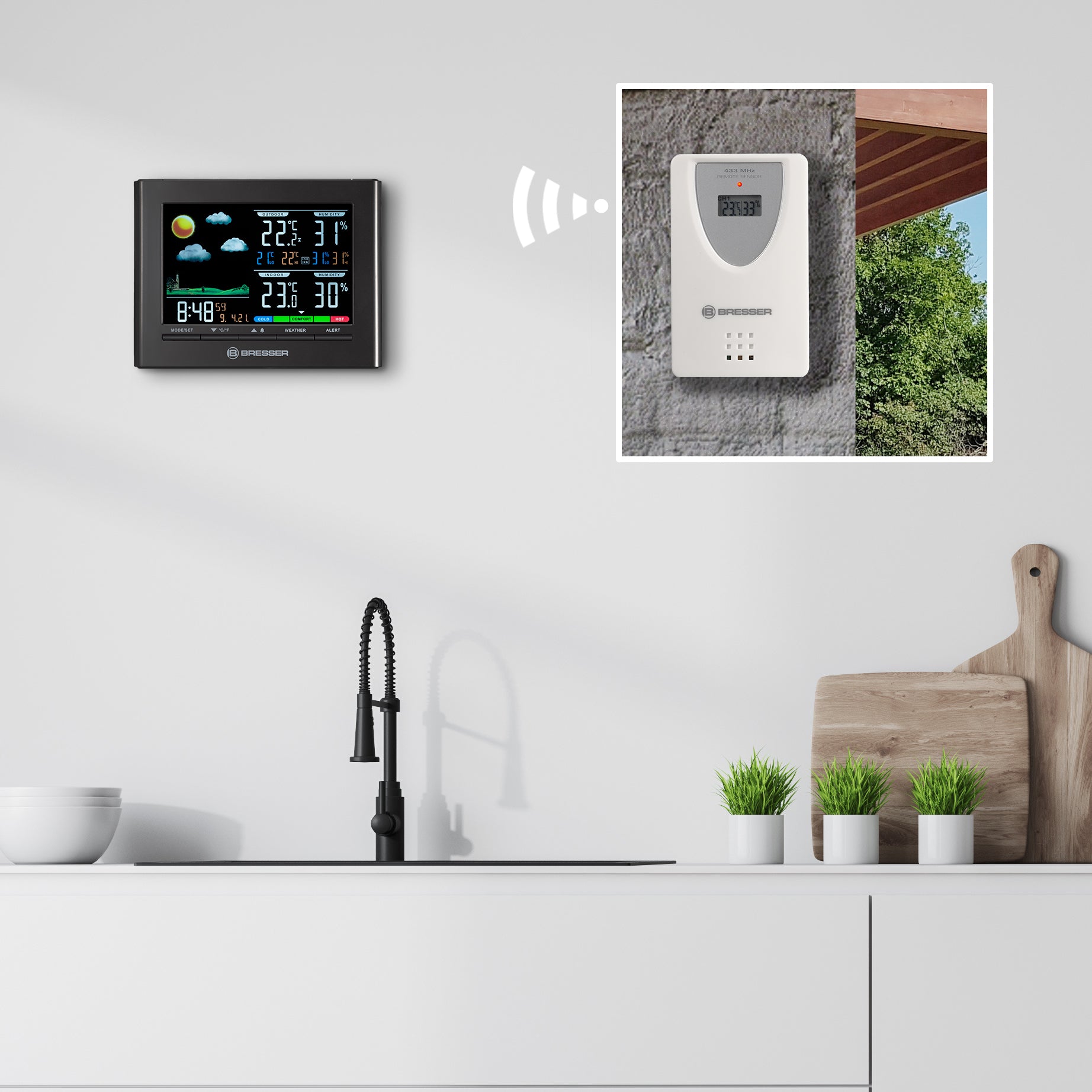 Equipment: Base station Temperature and moisture sensor Living unit