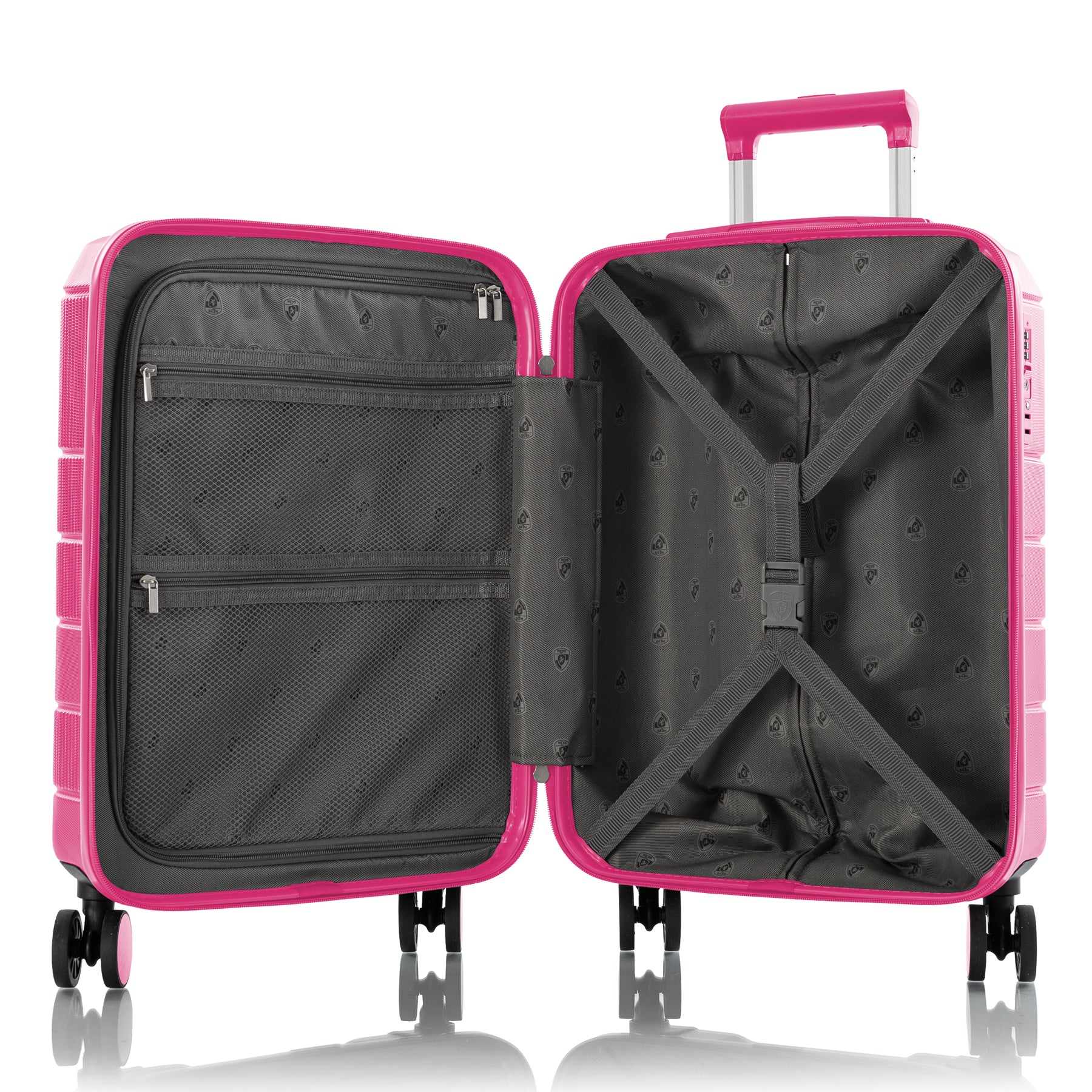 - Compression straps for securing luggage in the middle of the bag.
