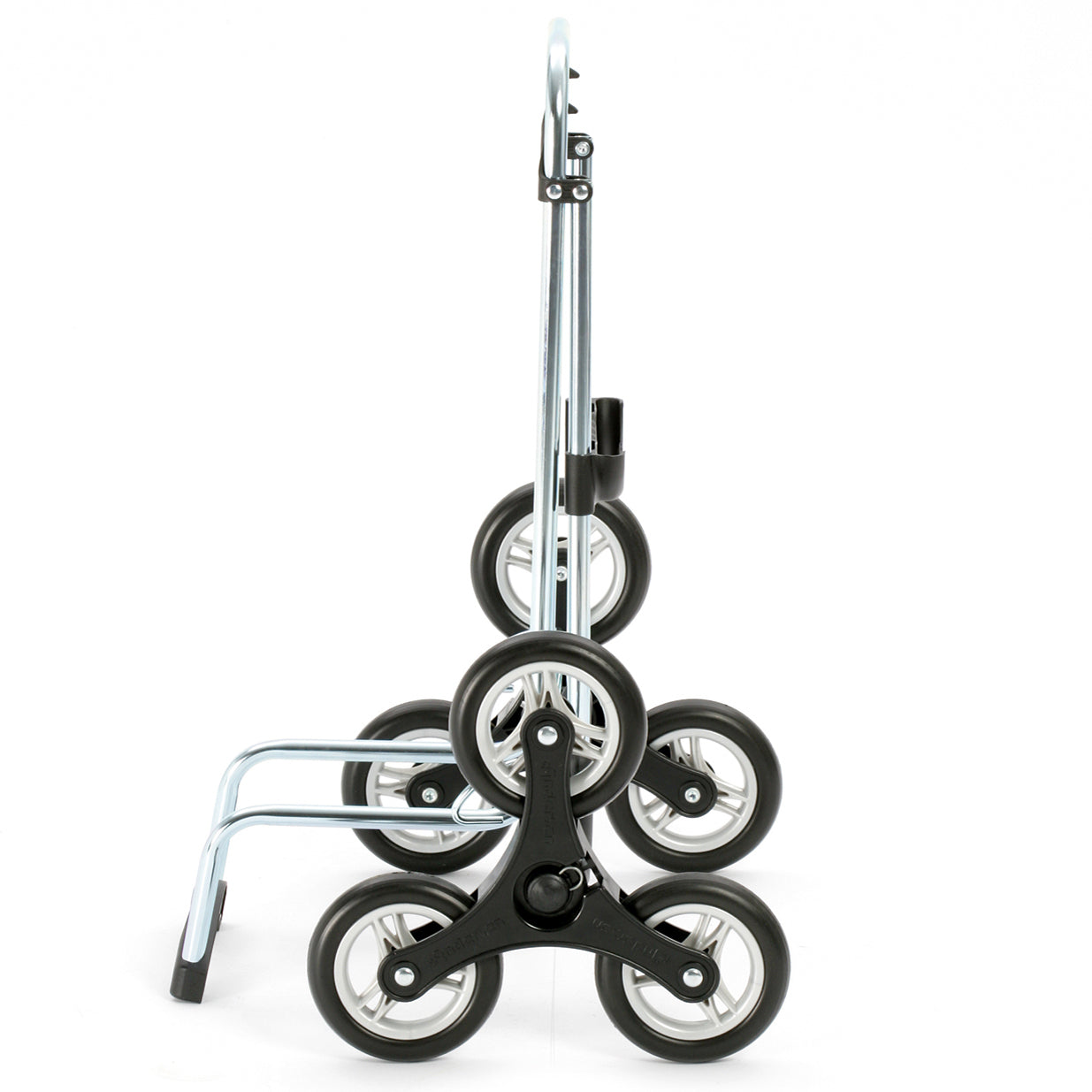 - The steel Treppensteiger Scala is equipped with a six-wheel system with wheels with a diameter of 13 cm and has a lifting capacity of 40 kg. Thanks to a simple fastening system, the wheels can be easily removed and washed. Everything you need to do is pressed onto the metal retainer on the wheel. Large diameter wheels are suitable for uneven terrain and easy wheel alignment.