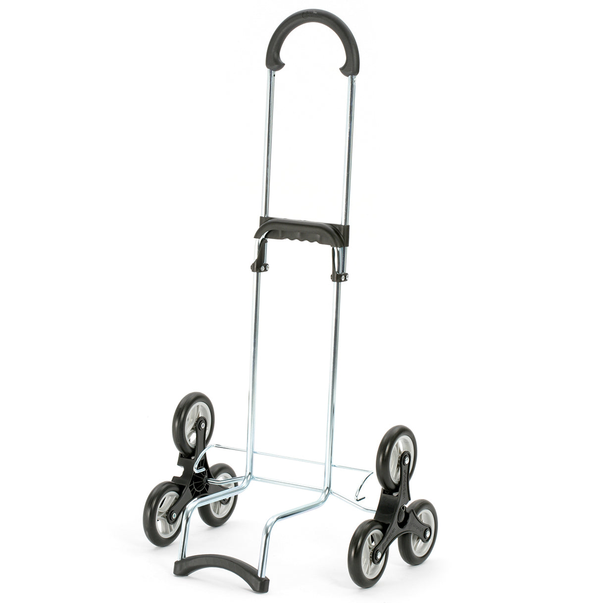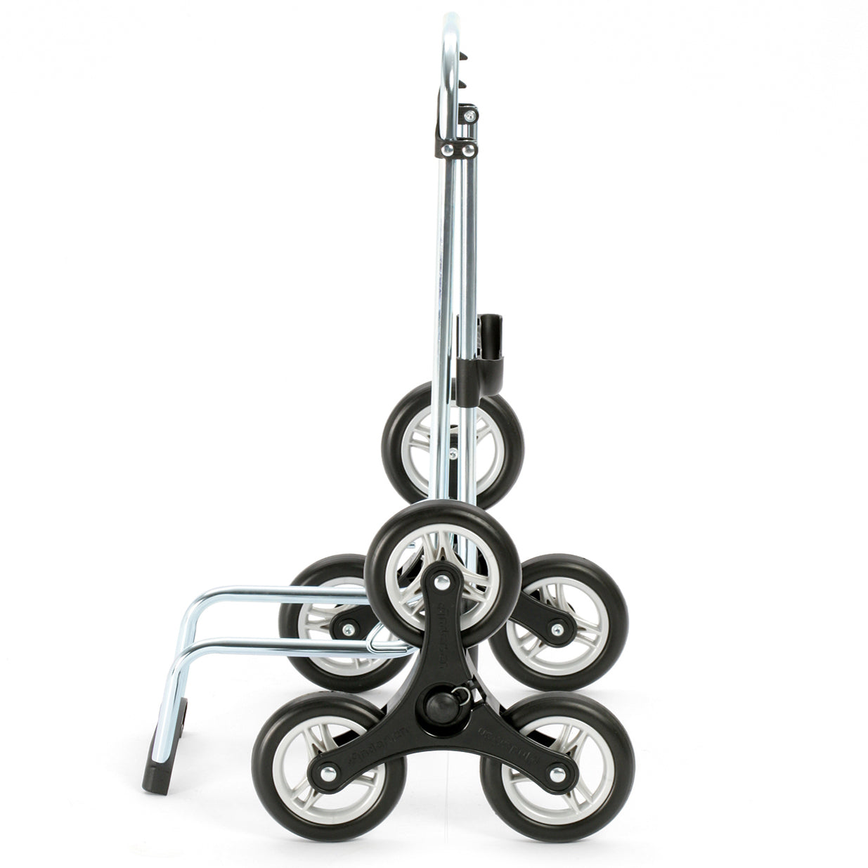 • The steel Treppensteiger Scala is equipped with a six-wheel system with wheels with a diameter of 13 cm and has a lifting capacity of 40 kg. Thanks to a simple fastening system, the wheels can be easily removed and washed. Everything you need to do is pressed onto the metal retainer on the wheel. Large diameter wheels are suitable for uneven terrain and easy wheel alignment.