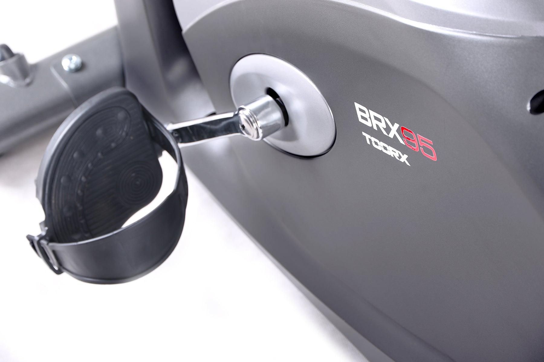 The Toorx Upright Bike BRX 95 (BRX-95) exercise bike from the Italian manufacturer Garlando SpA is designed for high-grade cardio training at home. The simulator has 32 levels of navigation, which can be adjusted with the help of a daily computer. The 10-kilogram flywheel ensures smooth operation, reducing stress on angles and minimizing the risk of injury during operation. The exercise bike is rated for a weight of up to 125 kg and is suitable for short athletes up to 2 m in height. Use a device for a drone-free sensor to monitor your heart rate during the hour of training in one of the four heart rate programs. The simulator console contains a stand for a smartphone/tablet. The seat of the exercise bike is adjustable in height and horizontal width for individual adjustment, and transport rollers in the front part of the exercise bike allow you to move it around the room.