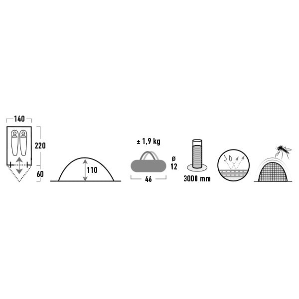 High Peak Kingfisher 2 LW Pesto/Red (10339) - a lightweight single-ball double dome net with an aluminum frame, weighs only 1.9 kg and impresses with its small packaging size. The wires and arcs are made from high-acid aluminum alloy 7001 T6, guaranteeing high resistance to wind damage. Lightweight and fine aluminum pins reliably secure the tent to the ground. On extremely hard ground or a wooden platform, the tent can be secured to stones. Several large loops ideally press the stone so that it stays on the ground. The external awning has a water resistance of 3000 mm water. Art. Made from high-acid polyester with polyurethane coating and waterproof seams. This single-ball tent can be installed in a self-supporting structure without any fuss. The vestibule has plenty of space to keep things organized, and the large top ventilation ensures optimal air circulation. Entering from the screen doors increases the flow of wind and prevents penetrating comas. There is a plan to equip it with a practical mesh police for speeches and fastenings for the lighter. High Peak Kingfisher 2 LW Pesto/Red (10339) is suitable for two people and also provides additional space for saving trekking arrangements. This is a wonderful design for riding bicycles, motorcycles, and canoes for camping in the wild.