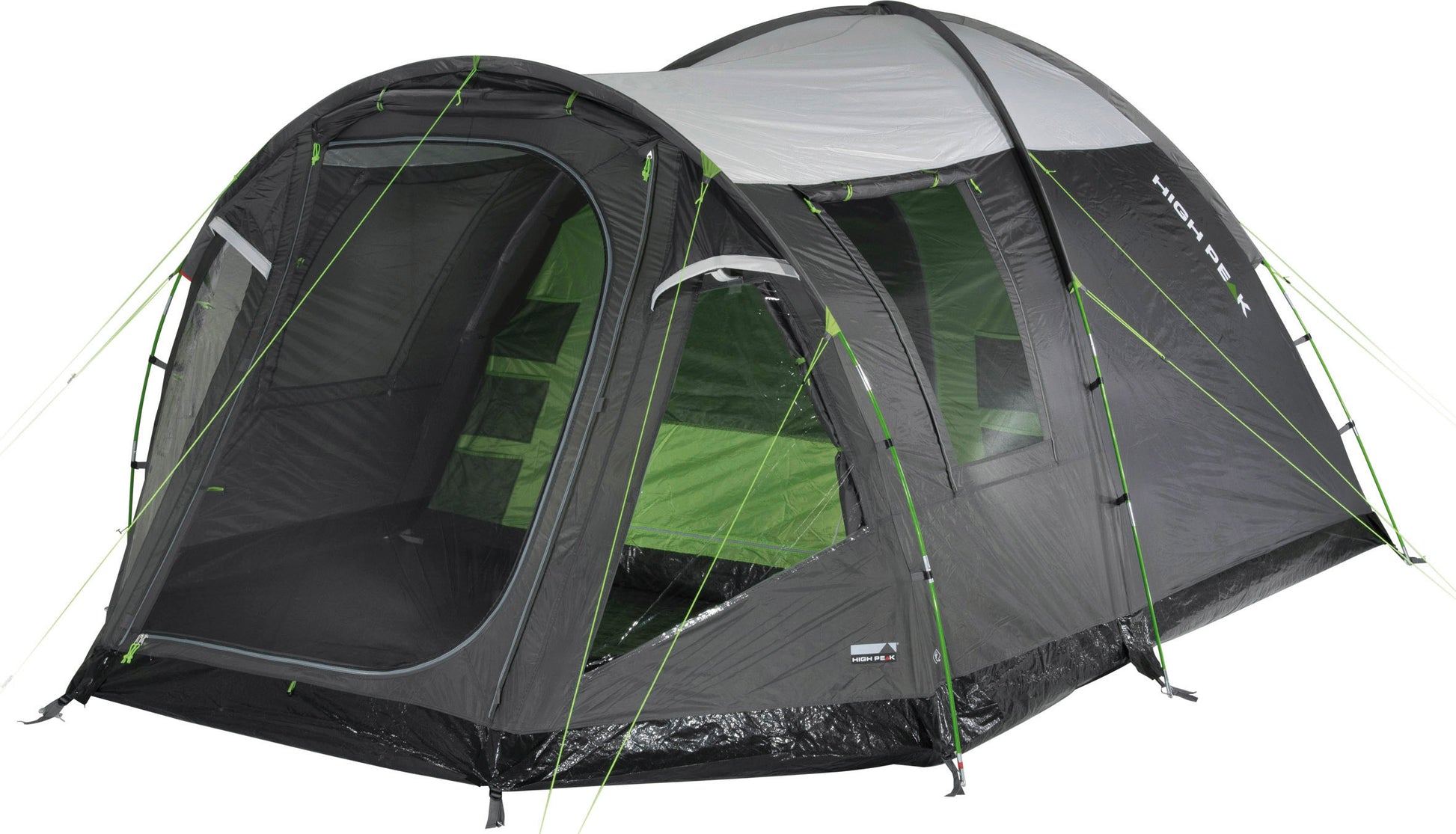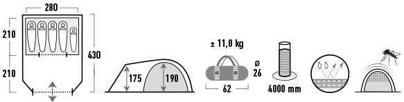 High Peak Santiago 5.0 Light Grey/Dark Grey/Green (11802) - five-point basting with a full-size sewn bottom, which ensures complete protection against comas and vologi. In the living area there are completely screened doors and two glass windows to increase the steady flow of fresh air throughout the room. All parts of the panels are covered with a dry cloth and have special inserts on the bottom of the board. The front openings of the windows in the living area will fill the interior with light, and the curtains will be adjusted as necessary. It has a thermally inflatable aluminized coating, which reduces the temperature rise in the middle of the day during sunny weather. Two front ventilation windows prevent continuous air flow and prevent condensation. The Dual Flow ventilation system developed by the High Peak company will ensure continuous air circulation in the bedroom. The valve on the flasher allows you to lay the electrical cable down the middle of the tent during the hour of camping. A wide, darkened bedroom guarantees a comfortable sleep not only at night, but also in the bright morning sun. The Vario Vent Control door system with large panels protects the bedroom from clogs and improves air permeability. The internal valve on the flasher is easy to adjust and folds neatly into a hand-held bowl. Organizers and internal storage containers allow you to carefully store everything you need, and the trimach for the lighter adds additional internal storage. High Peak Santiago 5.0 Light Grey/Dark Grey/Green (11802) accommodates up to five people and is ideal for family camping.