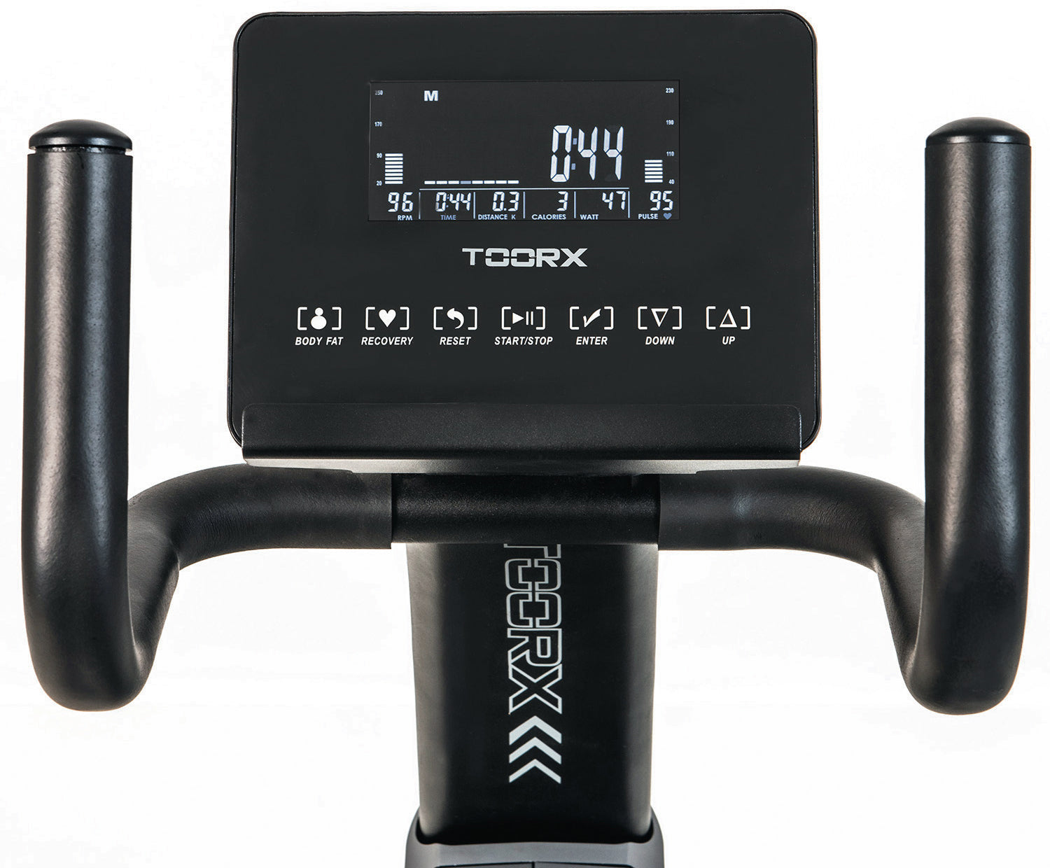 The horizontal bicycle ergometer Toorx Recumbent Bike BRXR 3000 (BRX-R3000) from the Light Commercial line from the Italian manufacturer Garlando SpA is intended for comfortable cardio training both at home and in small fitness clubs. The veloergometer with an inductive magnetic galvanization system has 32 levels of intensity, which can be adjusted using a daily computer. The 16-kilogram flywheel creates an exceptionally smooth ride, reducing stress on angles and minimizing the risk of injury in the process. The veloergometer is suitable for weights up to 160 kg and has a manual backrest with the ability to adjust the neck for greater comfort. Using the drone-less sensor will keep your heart rate constant during an hour of training in one of the four heart rate programs. The simulator console includes a stand for a smartphone/tablet and supports Bluetooth for integration with the popular iConsole+ Training and Kinomap programs, which turns monotonous training into a sweaty process. The seat of the veloergometer is adjustable in the horizontal plane for individual adjustment, and the transport rollers in the front part of the simulator allow you to move it around the room using an additional hand handle.