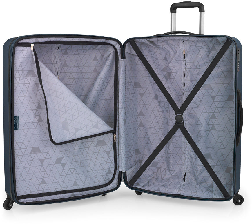 Country of registration of the brand: Spain Country of origin for product: China Warranty: 12 months Dimensions: 77 x 53 x 31-35 cm Color: Blue Weight: 4.3 kg EAN code: 8425126237895 Item: 930332 Brand: Gabol Size: Large (90 liters or more) Body material: ABS plastic Package weight: 4.7 kg Packaging dimensions: 80 x 55 x 35 cm