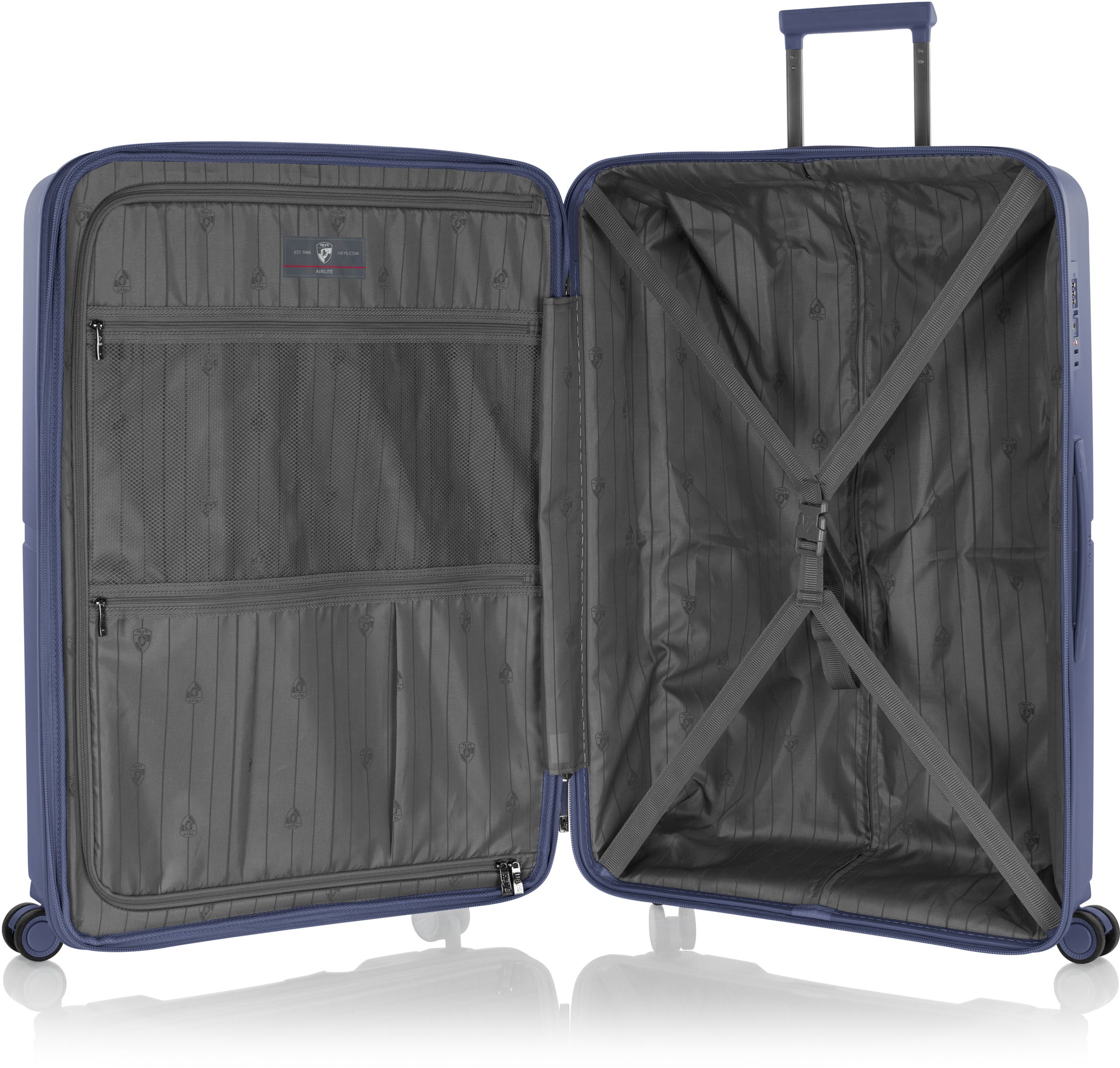 On 4 wheels Country of registration of the brand: Canada Country of origin for product: China Warranty: 12 months Dimensions: 76 x 50 x 30.6 cm Color: Blue Weight: 3.9 kg EAN code: 665556050673 Item: 930372 Brand: Heys Size: Large (90 liters or more) Body material: Duraflex Package weight: 4.5 kg