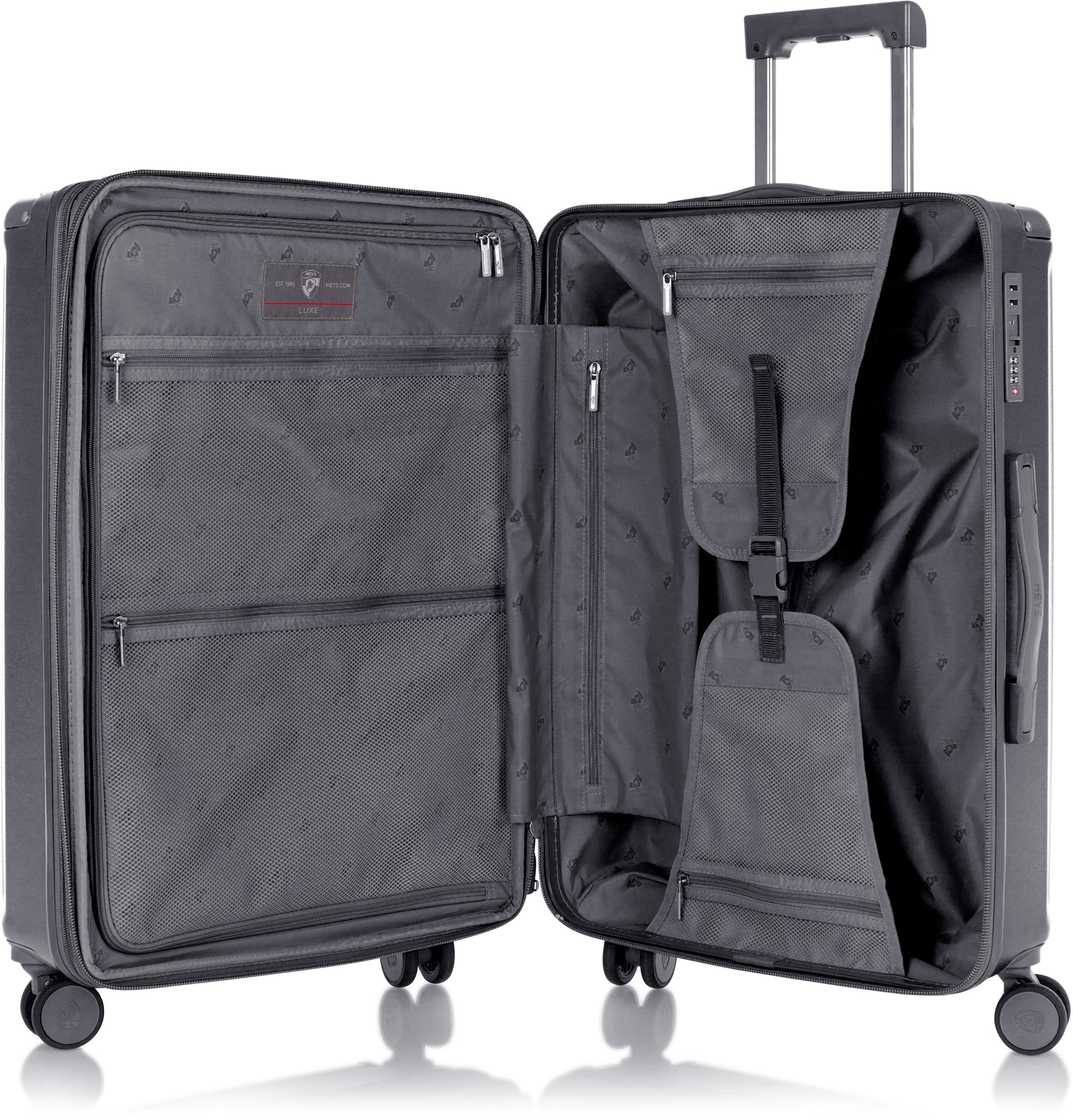 Valise Heys LUXE series combines luxury and functionality. In addition to the unique design, there is a series of expanded functionality. The Heys Luxe (M) Gunmetal (10160-0063-26)/(10160-0063-S3) bag has a luxurious frame with a matte textured texture and metal overlays. The inner lining of the vase is made of satin, a belt for fixing speeches is placed around the casket for placing various items, around the casket for placing valuables and/or documents, the main partition there are two parts of teeming on the brisk. Expanding valve allows you to increase the volume by 20%, dry metal lining on the rollers, combination lock with TSA function, top and barrel handles with a gel pad for manual transportation, telescopic handle with multi-step height fixation. All in all, the product is more functional and stands out among its competitors.