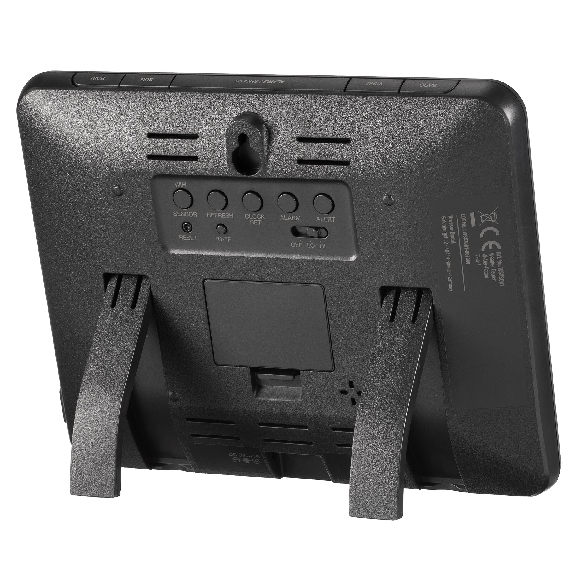 A daily professional weather station with a color display and weather forecast Bresser Professional WIFI Weather Center 7in1 (WSX3001C) will ensure the monitoring of such important weather parameters as the value of the atmospheric pressure, weather forecast, wind speed, level of fall, level of comfort in the room, intensity of ultraviolet radiation (UV), light intensity, temperature and air humidity. The functionality of the station allows you to exchange data via WIFI on the portals: Weather Cloud , Weather Underground , and view data online on smartphones, tablets and computers. An alarm function has been added to alert you when the configured parameters go beyond the specified limits. All sensors are arranged in a single unit, which significantly simplifies and speeds up the installation process, and includes an additional wireless temperature sensor and sensors. The external sensor unit houses a solar panel for uninterrupted and trouble-free life. Modern high-contrast color display. The modern, laconic design and wide range of functions allow you to use this weather station both in your apartment and in your garden plots with equal success.