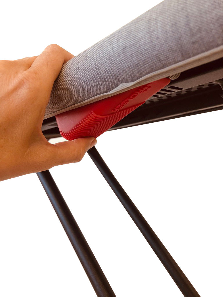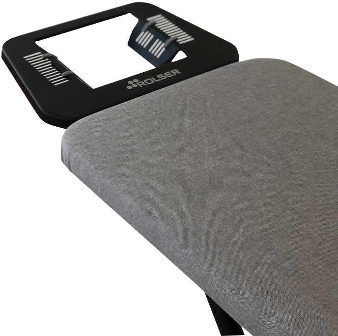 Bathroom board Rolser K-22 Black Tube Plomo (K06016-2087) is a clear product with a modern design and wide functionality. The perforated base of the working surface prevents condensation from forming. More efficient drying is ensured by a tri-ball bean bag, which releases heat and steam. The stand for sanding is resistant to high temperatures. The model is height adjustable in ten positions and has an automatic lock. The tubular parts of the legs provide the structure with stability and are easily attached to the board in the folded frame, which prevents it from breaking.