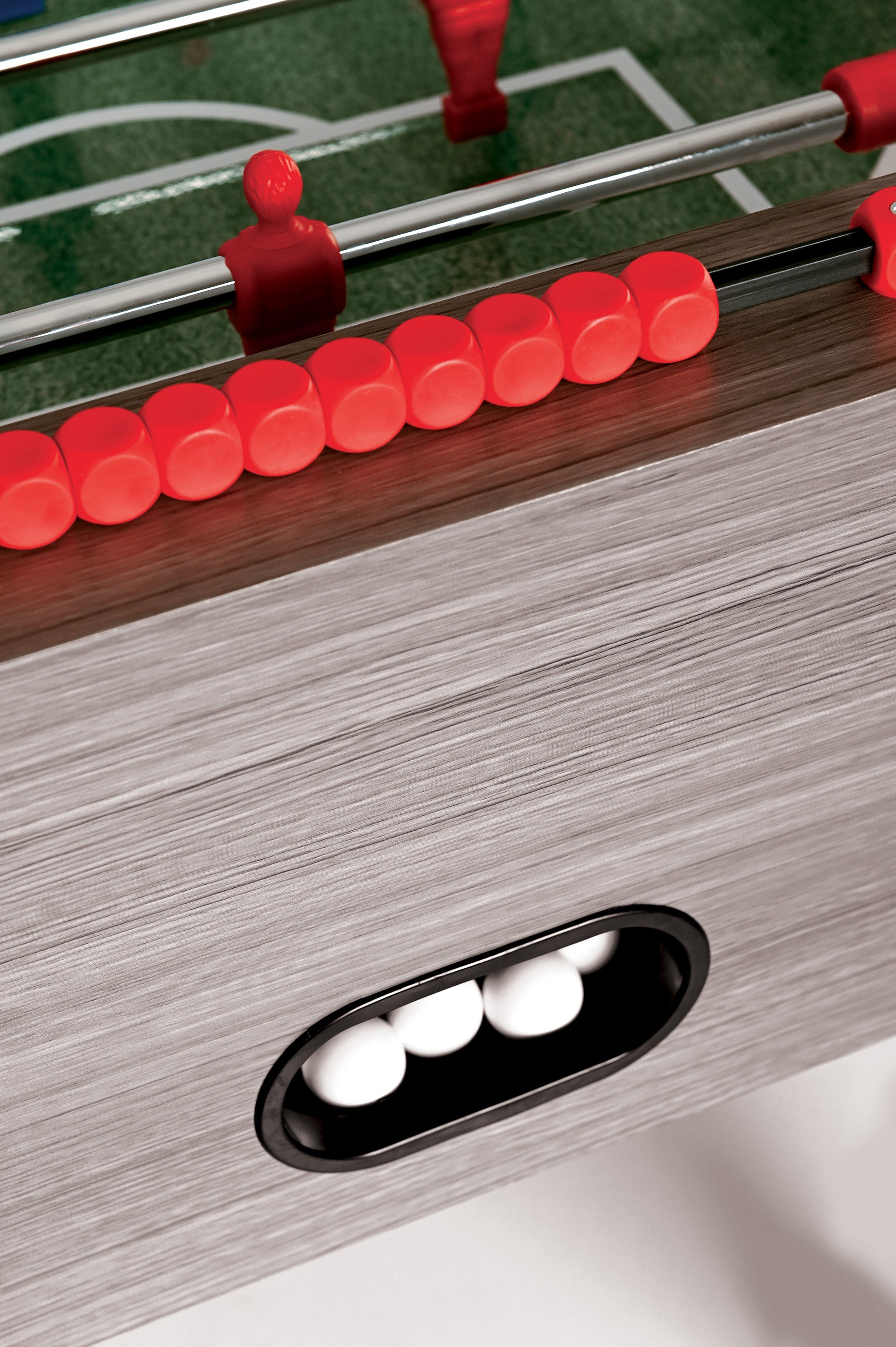 - Ігрове поле із МДФ із меламіновим покриттям. Особливий ефект трави створює враження гри на футбольному полі. Підняті кути дозволяють швидко повернути м'яч у гру.