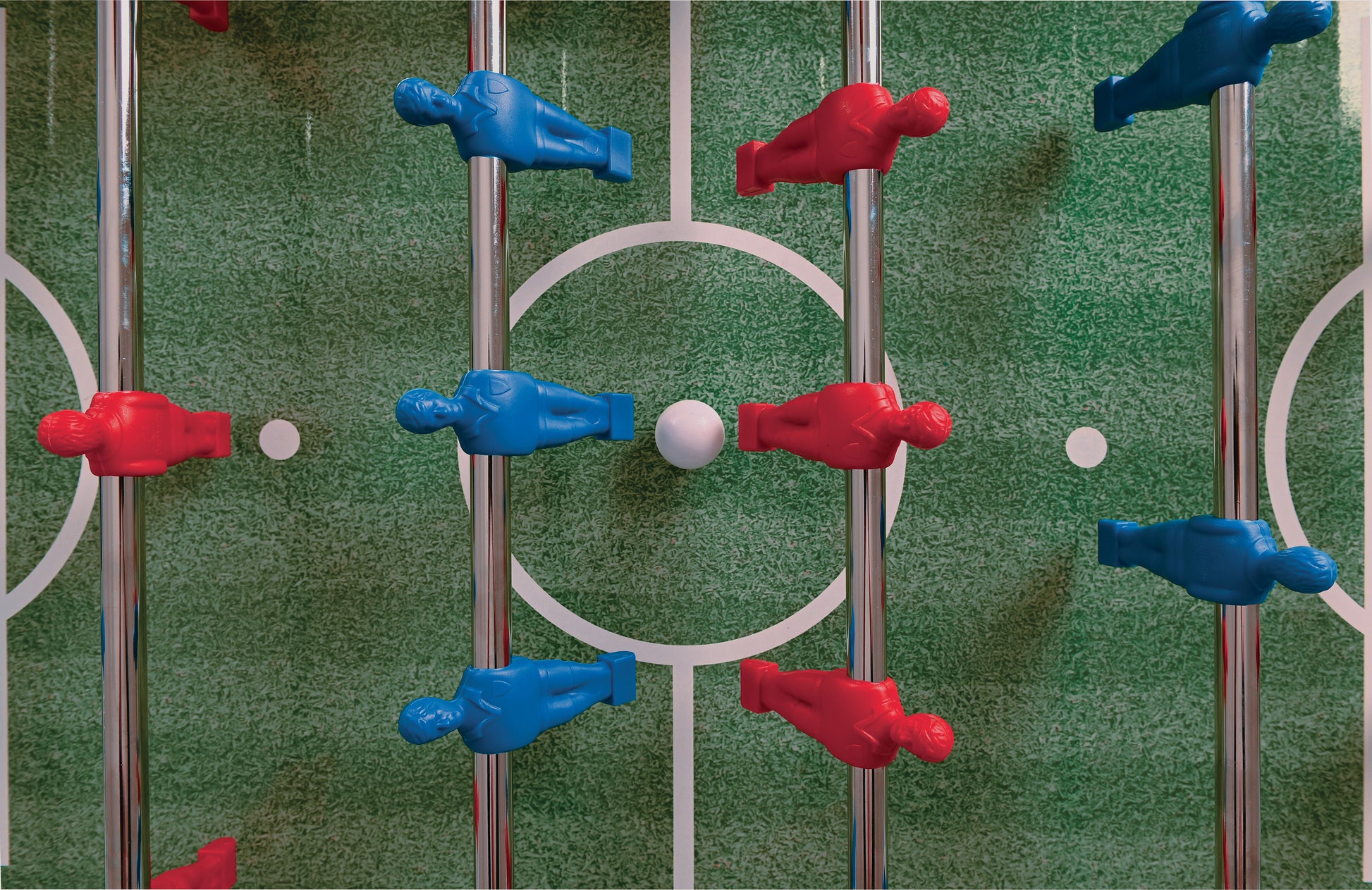 - Легко забивати голи, завдяки воротарю, що обертається на 360°, і особливій схемі гравців: 1 воротар - 2 захисники - 5 півзахисників - 3 нападники.