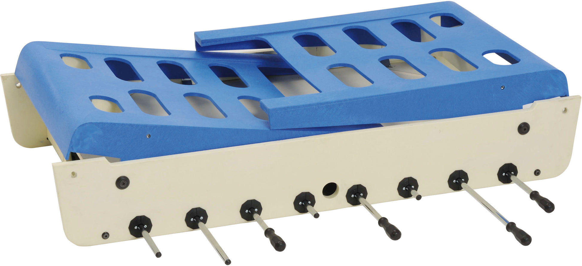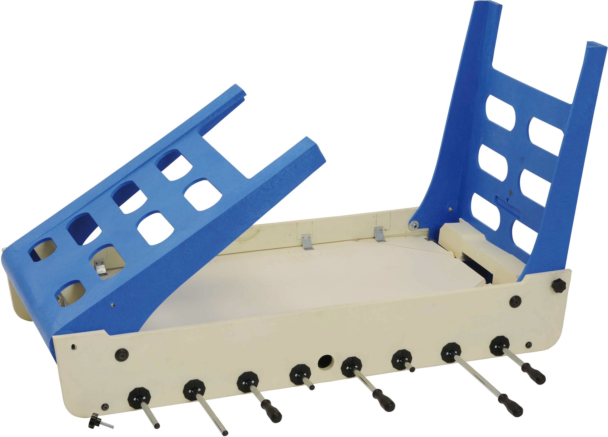 - The legs of the blue color are made of molded plastic with a thickness of 10 mm, resistant to atmospheric influences.