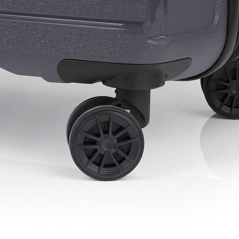 The Gabol Osaka (M) Gray wallet (121046-016) is equipped with two wheels with the ability to rotate 360°. The design of the transfers ensures an even distribution of the wheel, which in its turn combines the smooth movement and maneuverability of the basket, which results in a minimum of force. The wheels are made from thermoplastic polyurethane (TPU). This material has the same flexibility as plastic, the flexibility of silicone, and also improved resistance to temperature changes. The advantageous feature of TPU wheels is to reduce noise to a minimum when the wheel is rolling. Due to their resistance to abrasion, the material of the wheels is subject to serious conditions of use.