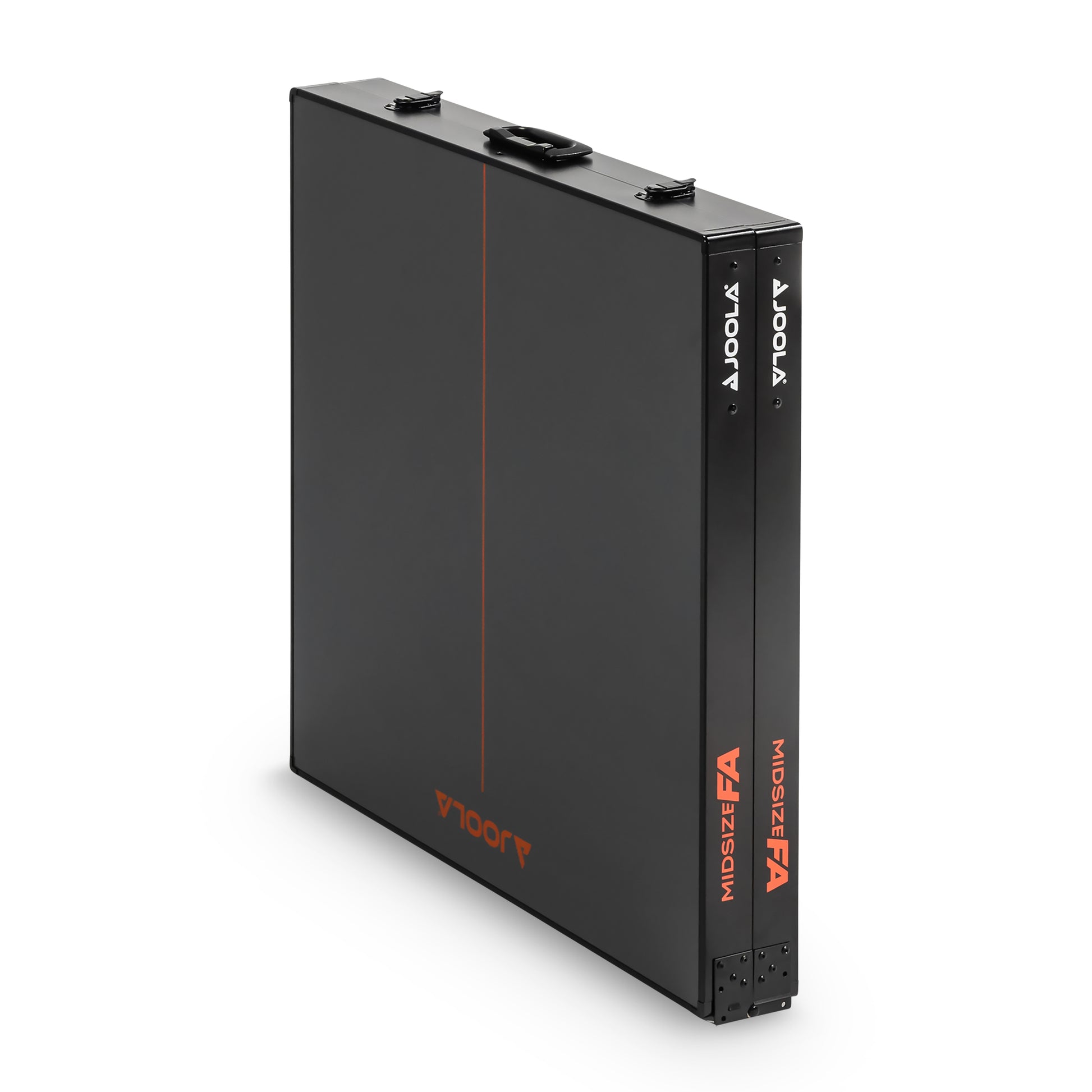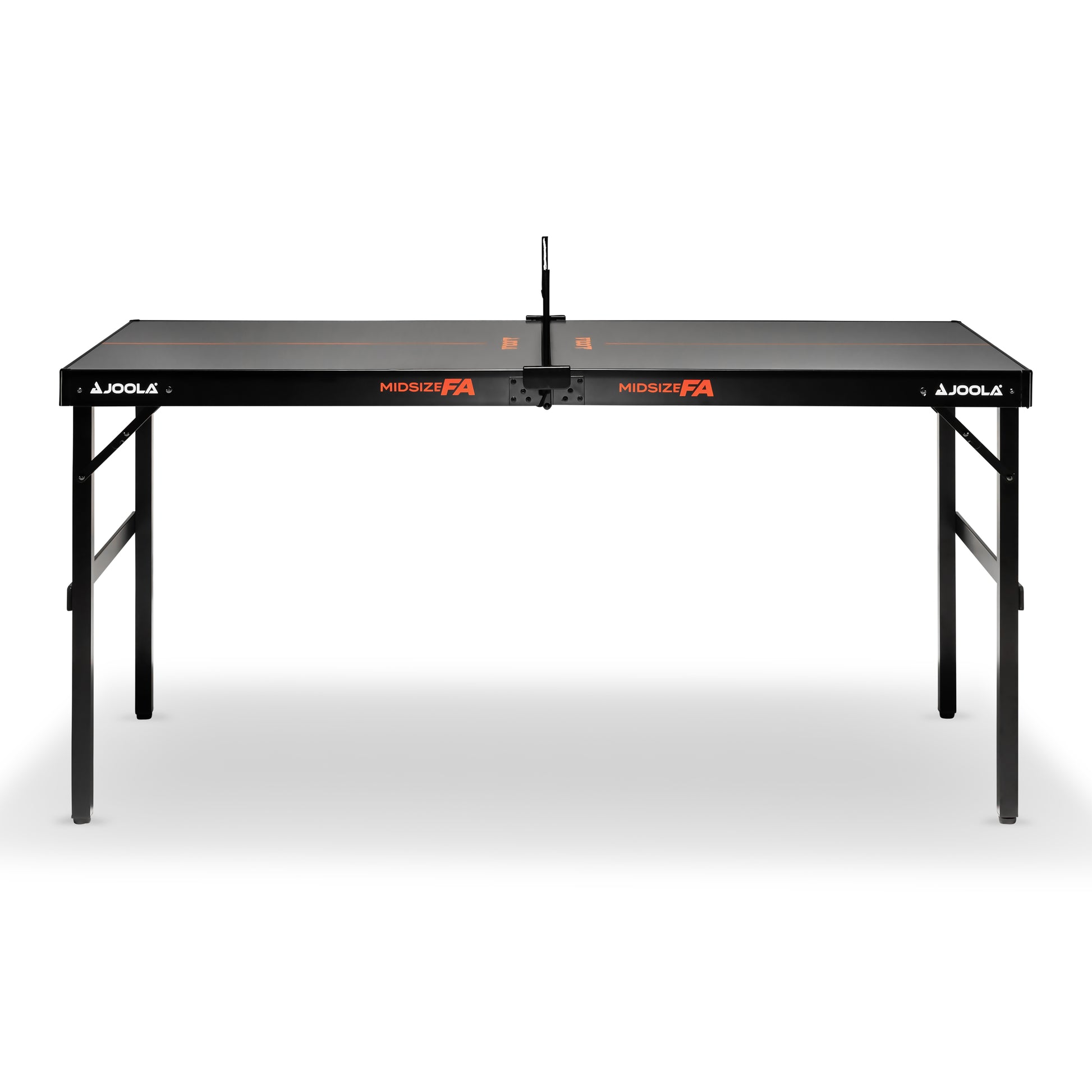 - Easier to transport and saves space for saving Thanks to the folding mechanism, the Joola Midsize FA table can be easily folded into a compact size basket and transported using an additional built-in handle, and also takes up less place to save.