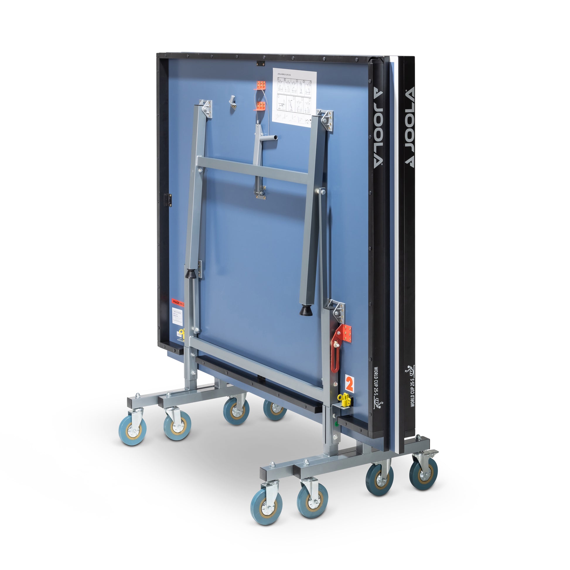 - Easier to transport Transport the tennis table Joola World Cup 25 using 4 wheels with locks, on the outer half of the table. Wheels with rubber coating ensure stability and increase mobility, allowing flexible positioning of the table.
