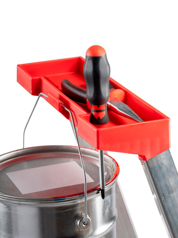 Drabin Rolser Escalera Brico 6 pins (BRI004) - certified to the European standard UNE-EN131. Maximum weight - 150 kg. The model is recommended for both professional and home use. The shotgun is equipped with a protective seal and a folding fold. The model has six plates with an antique leather structure. Handy, ergonomic support for tools with a built-in hook for hanging equipment. The supporting legs are covered with a plastic guard that resists unfavorable shoeing.