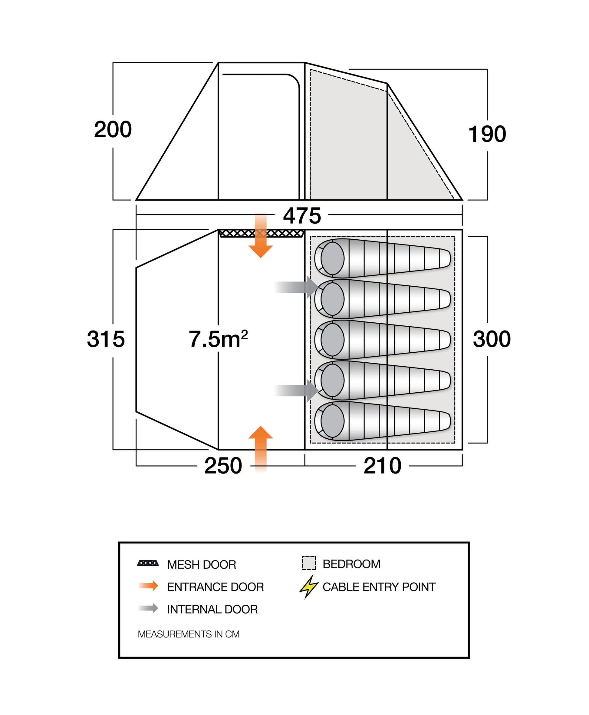 The Beta 550XL is a 5-person tunnel that offers great sleeping space and a large, functional veranda to save the essentials for camping. Consider equipping our Sentinel Flysheet (3000 mm HH) awning with ColourLok Eco technology so that your awning can better preserve your color. The Midnight Bedroom® will ensure a quick night's sleep, and the Easy-Pack Carry Bag will make life easier during the hour of accommodation after a wonderful camping trip. The Beta 550XL is ideal for long trips, and is also suitable for tourists who are looking for more space and comfort on the weekend.