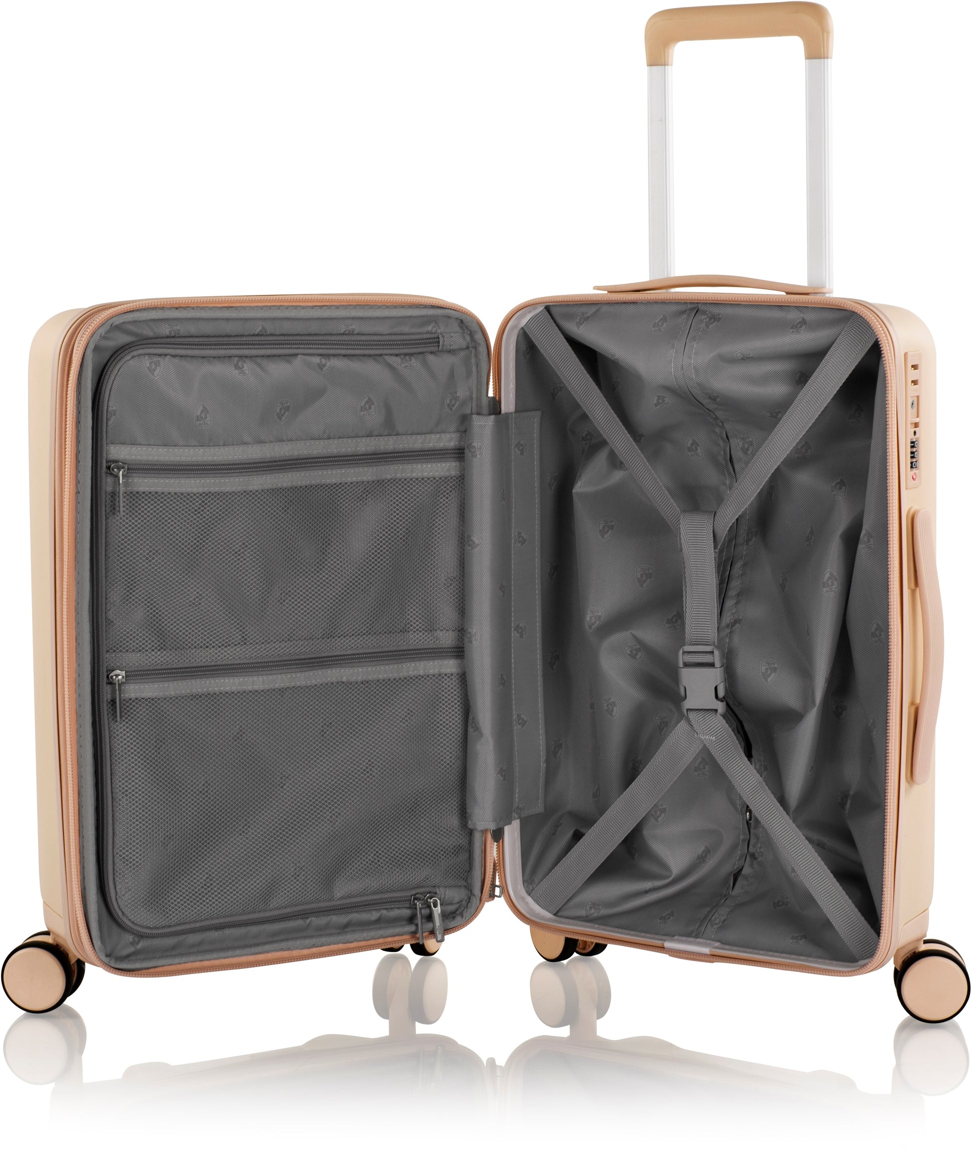 Hand luggage Country of registration of the brand: Canada Country of origin for product: China Warranty: 12 months Dimensions: 53 x 35 x 22.6 cm Color: Nude Weight: 3 kg EAN code: 665556050055 Item: 930894 Brand: Heys Size: Small (up to 50 l) Body material: Polycarbonate Package weight: 3.3 kg Package dimensions: 58 x 42 x 26 cm