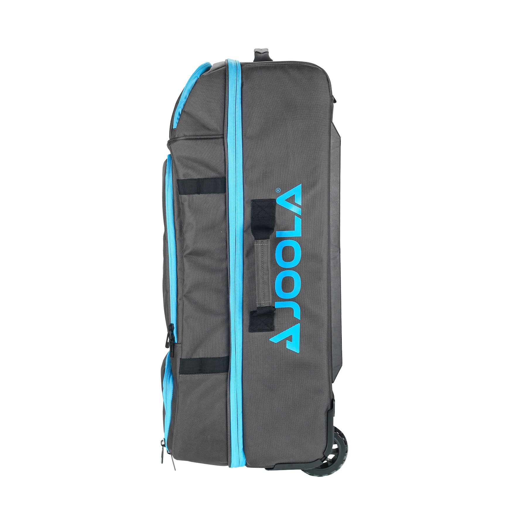 The Joola Vision Softside Suitcase sports bag on wheels offers plenty of space to save money and space to organize your activities. The bag is made from reinforced polyester fabric and is lightweight, flexible and durable. Joola Vision Softside Suitcase is ideal for space saving, value and mobility. Due to its numerous well-thought-out sections and sophisticated design, the wine is ideal for travel, training and tournaments. Experience optimal organization and mobility with the JOOLA Vision Softside Suitcase - the ideal companion for your personal possessions!