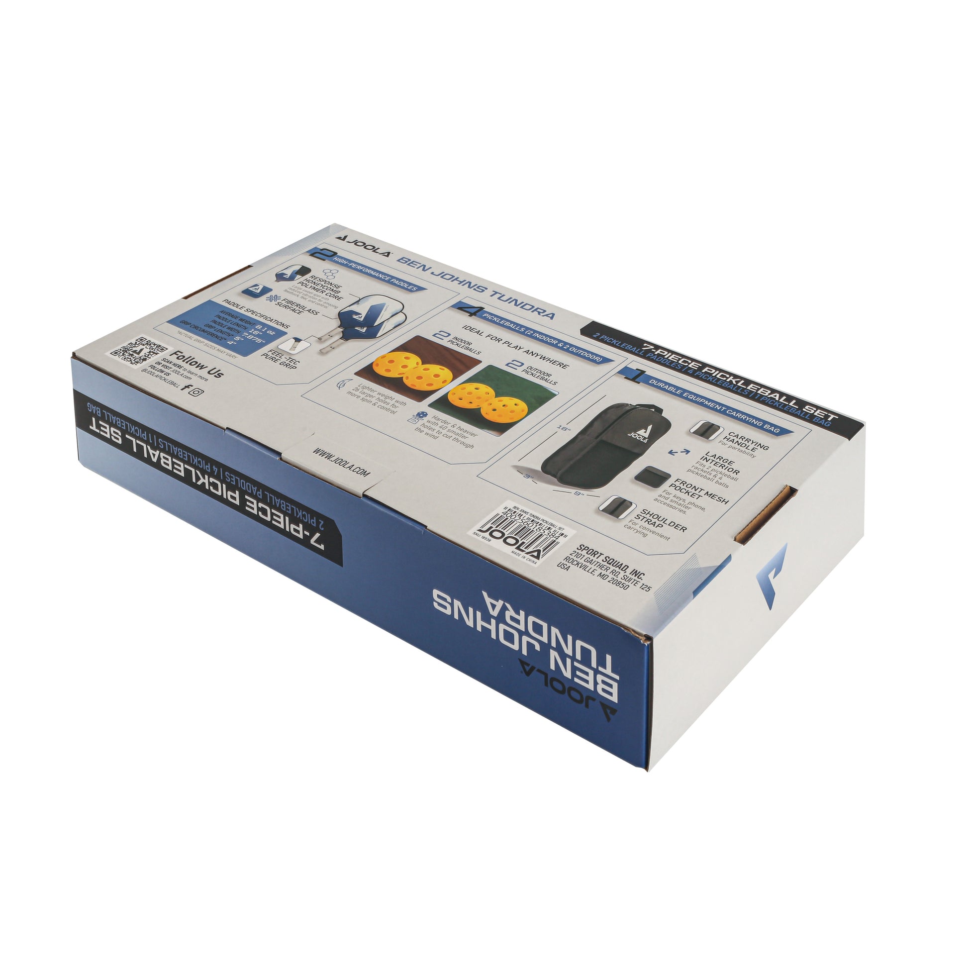 The package includes: 2 Joola Tundra pickleball rackets, 2 storage balls and 2 outdoor balls, storage bag