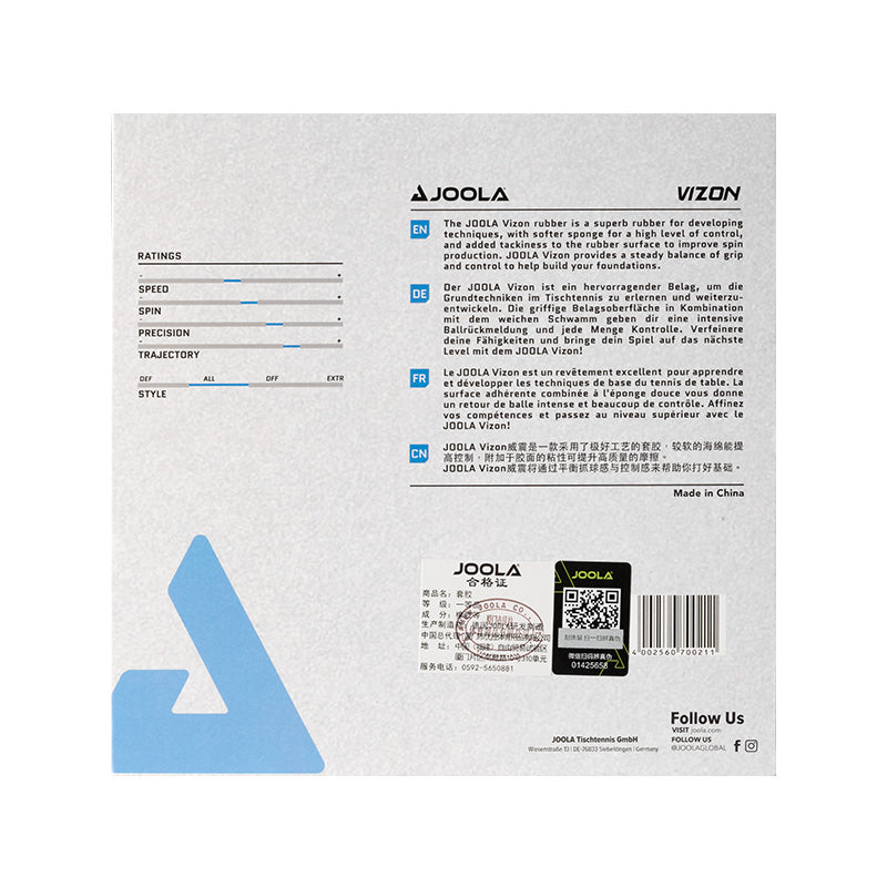 The rubber for the Joola Vizon 2.0 racket has a fine-porous sponge with excellent shock-absorbing properties and therefore has particularly high control characteristics. Guma is very popular among the Gravians, as it gives precedence to classic gums, without the inducing effect of liquid glue and with the significantly reduced power of the catapult. The upper gum is even stable up to the entrance wrapper, so the frequency of washing can be significantly changed.