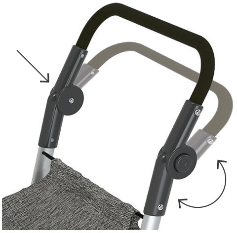 - The handle with a push-button lock allows for height adjustment of the head.