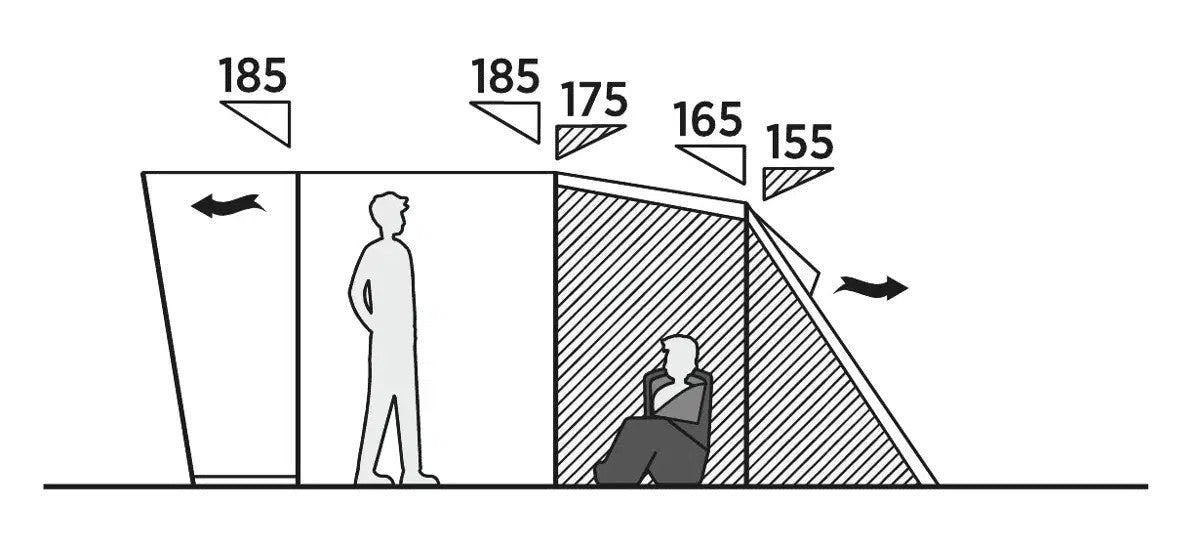 Flysheet (external awning): WeatherGuard 3000, 190T PU-coated polyester, PFC-free, waterproof