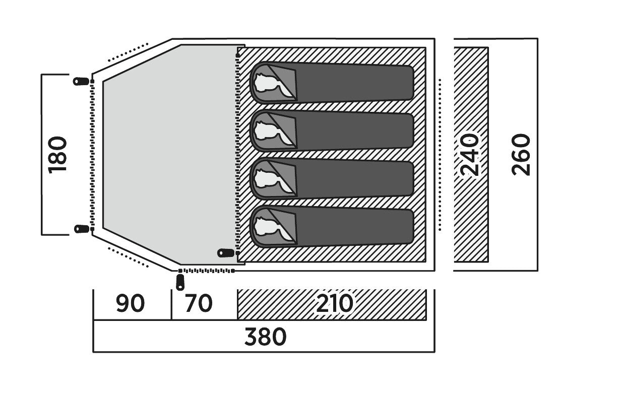 The Lomsdal 4 awning is a dome-shaped awning with an expanded seat for saving speech and two inputs for additional handiness. This spacious veranda has a great cover, which will make installation and maintenance easier. The internal SleepTight cord blocks out light for a restful sleep, ideal for early morning and evening sleep. Designed to help you get the most out of whatever you need in the new world, Lomsdal 4 brings practicality and comfort into one universal package.