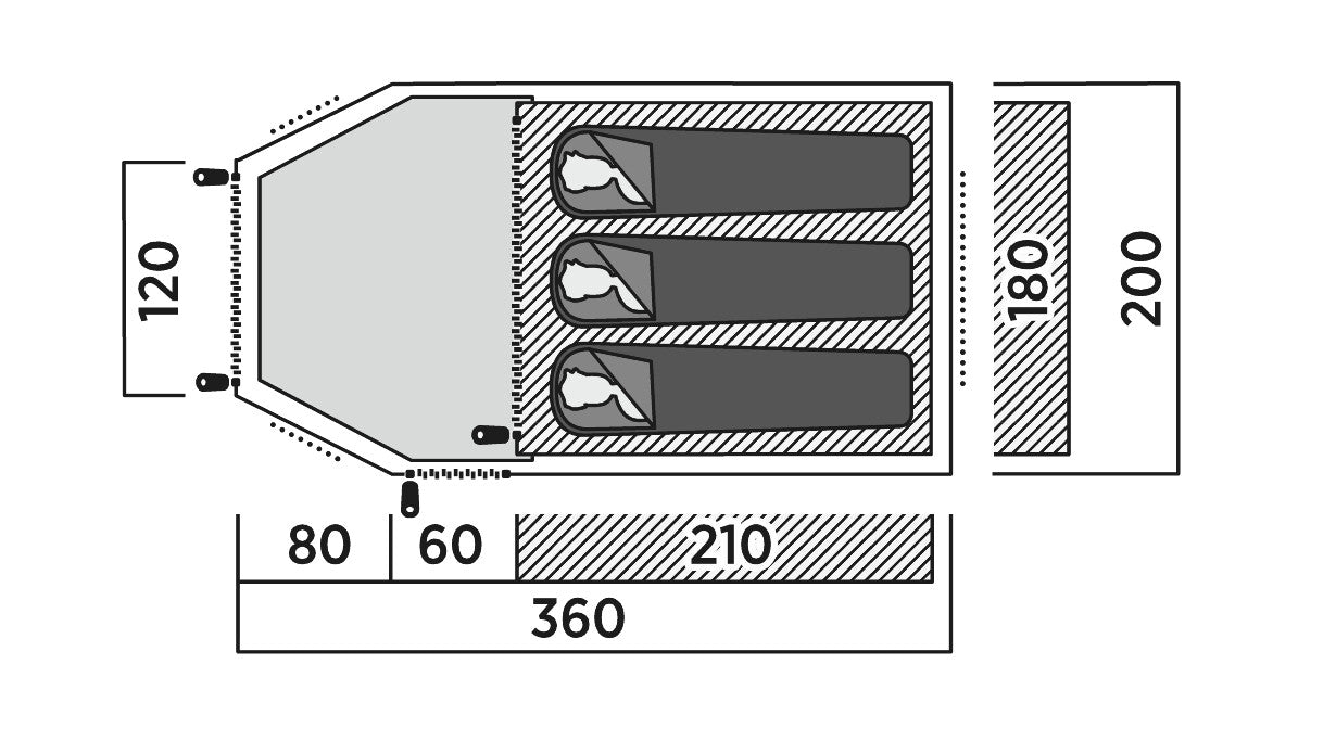 The Lomsdal 3 awning is a dome-shaped awning with an expanded space for saving speeches and a spacious veranda with generous cover surfaces. With two inputs for additional handiness, it demonstrates wonderful versatility. The internal SleepTight design ensures a restful night's sleep, whether early in the morning or late in the evening. Combining functionality with comfort, Lomsdal 3 is the ideal companion for your outdoor adventures.