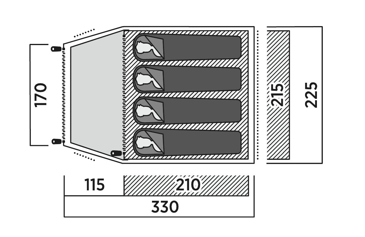 Setesdal 4 has a spacious veranda with generous cover surfaces, which provides a universal place for preserving and protecting the property. It provides frontal and top ventilation for excellent air circulation, and the internal SleepTight lining, made from dark materials and with optimal ventilation, guarantees a restful sleep in all minds. This compact and easy to transport dome cover, which conveys handiness and comfort, is ideal for a variety of situations.