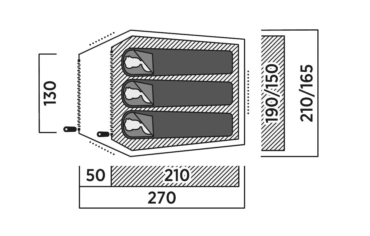 - Dimensions to set: 270 × 115 × 210 cm