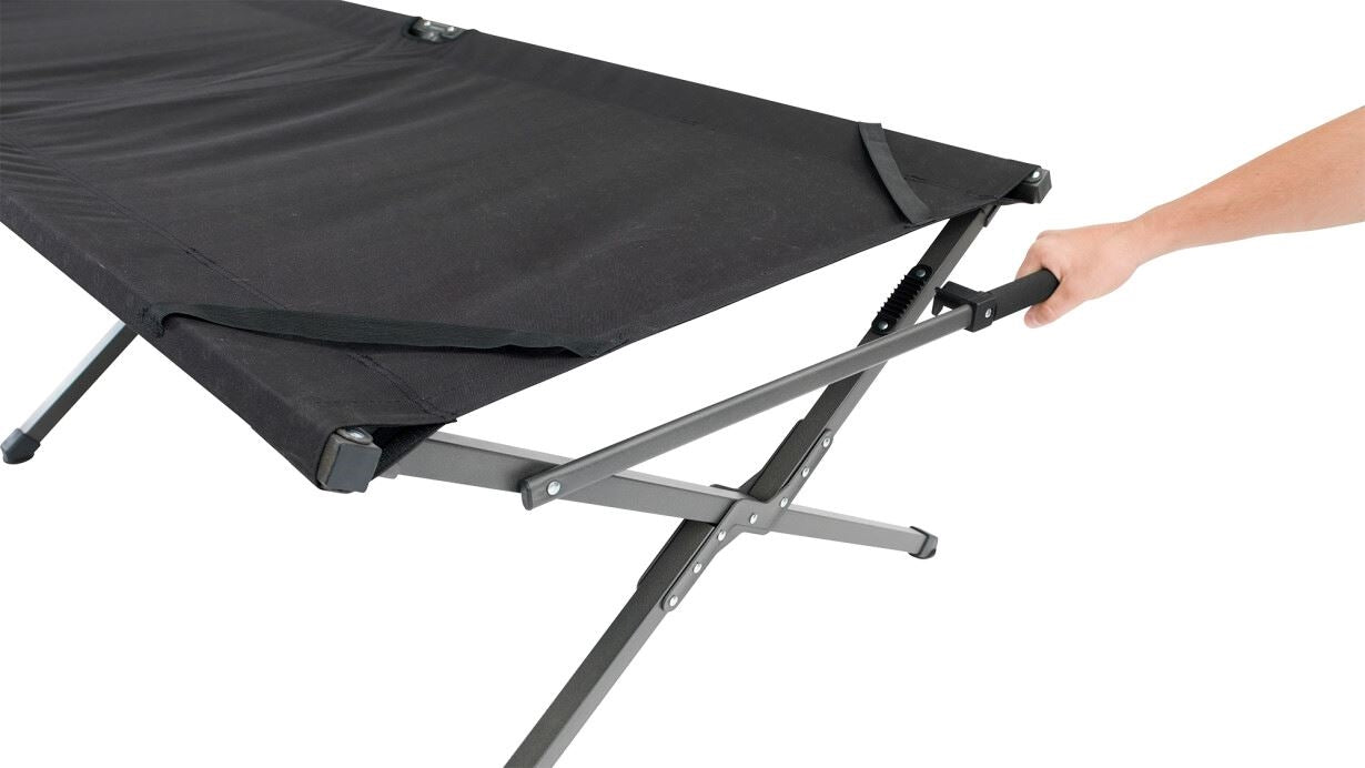 Це розкладне ліжко ідеально підходить для вашої відпустки та поєднує в собі комфорт і практичність. М'яка сітчаста подушка забезпечує спокійний сон, а еластичні ремінці надійно фіксують килимок. Його високоміцний сталевий каркас з порошковим покриттям та функцією блокування забезпечує надійну підтримку. Коли настає час пакувати, воно складається до компактного розміру та акуратно поміщається в сумку, що входить до комплекту, що спрощує транспортування та зберігання.
