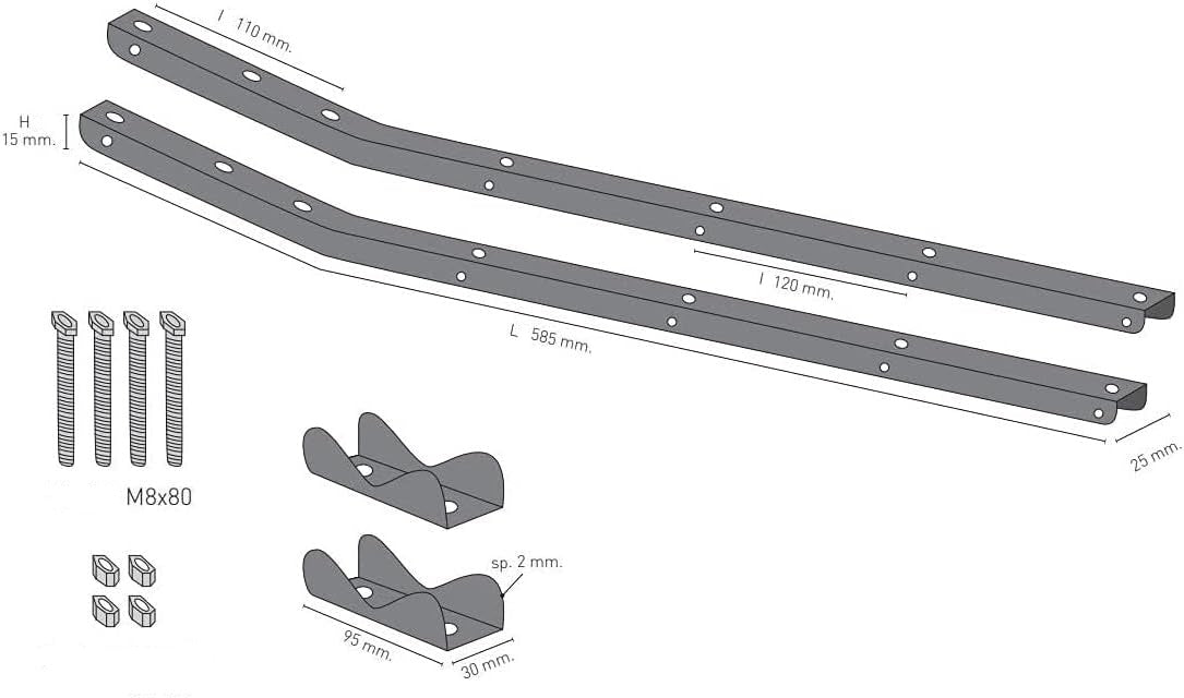 - Розміри (ДхШхВ): 25 мм, довжина кронштейна: 585 мм, висота кронштейна: 15 мм.