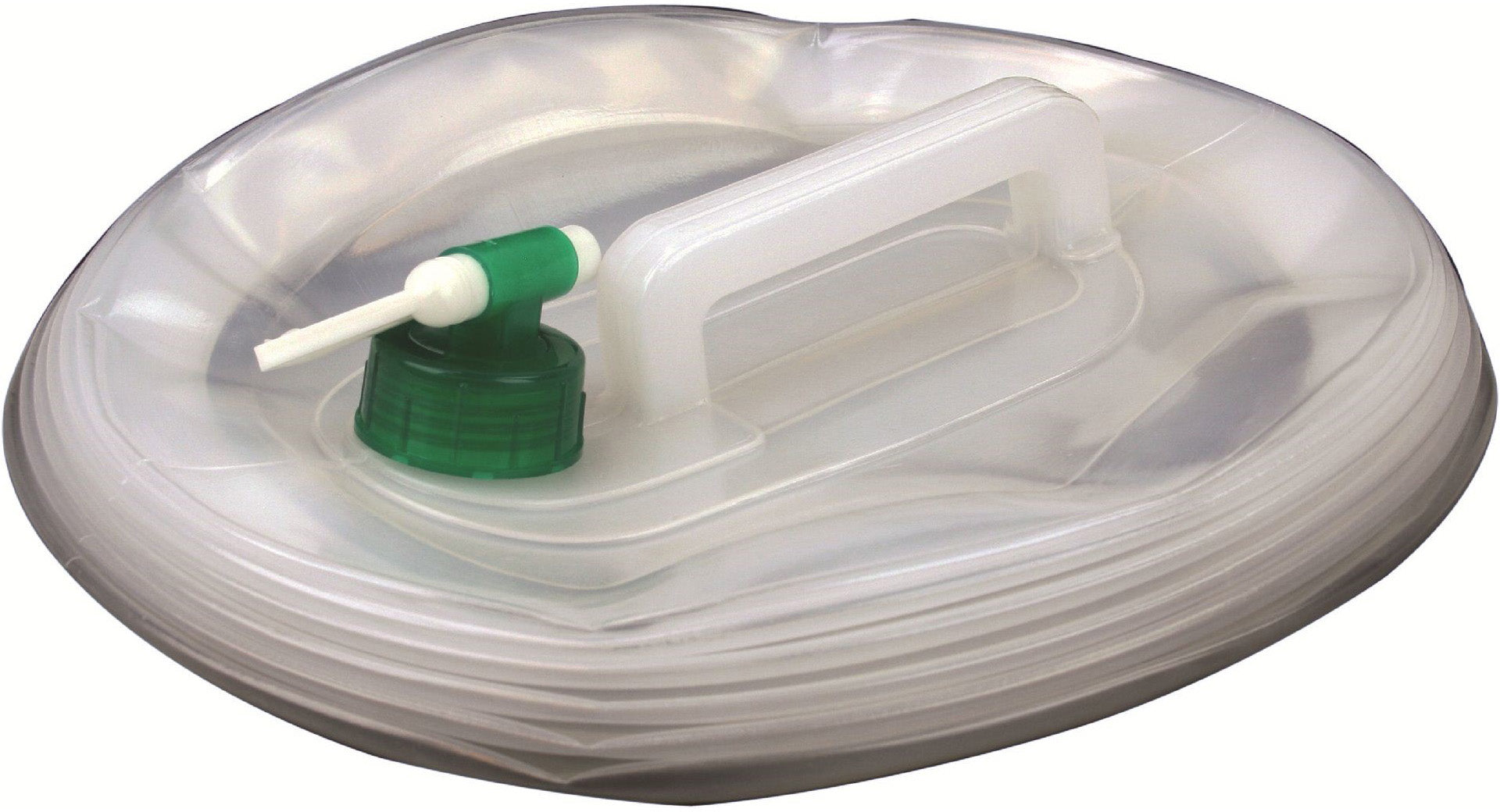 Water storage capacity Highlander Accordion Water Carrier 15L (CP108) takes up minimal space in a backpack and carries little space, so its value in other minds may be even more significant. The container is easy to transport, it has a handy handle for transferring it and a wide filler neck with a tap. The structure can be folded to compact dimensions if the container is empty or half filled.